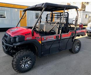DO NOT TIE DOWN THE HANDLEBAR ENDS AS IT WILL BRAKE THE HANDLEBARS. This down tbe machine around the steering stem and down to each side to the floor and CHOCK the front wheel from Turing left and right and the machine will be stable to transport. DO NOT place it on its stand for transport. Use tie downs to hold it upright in transport.
