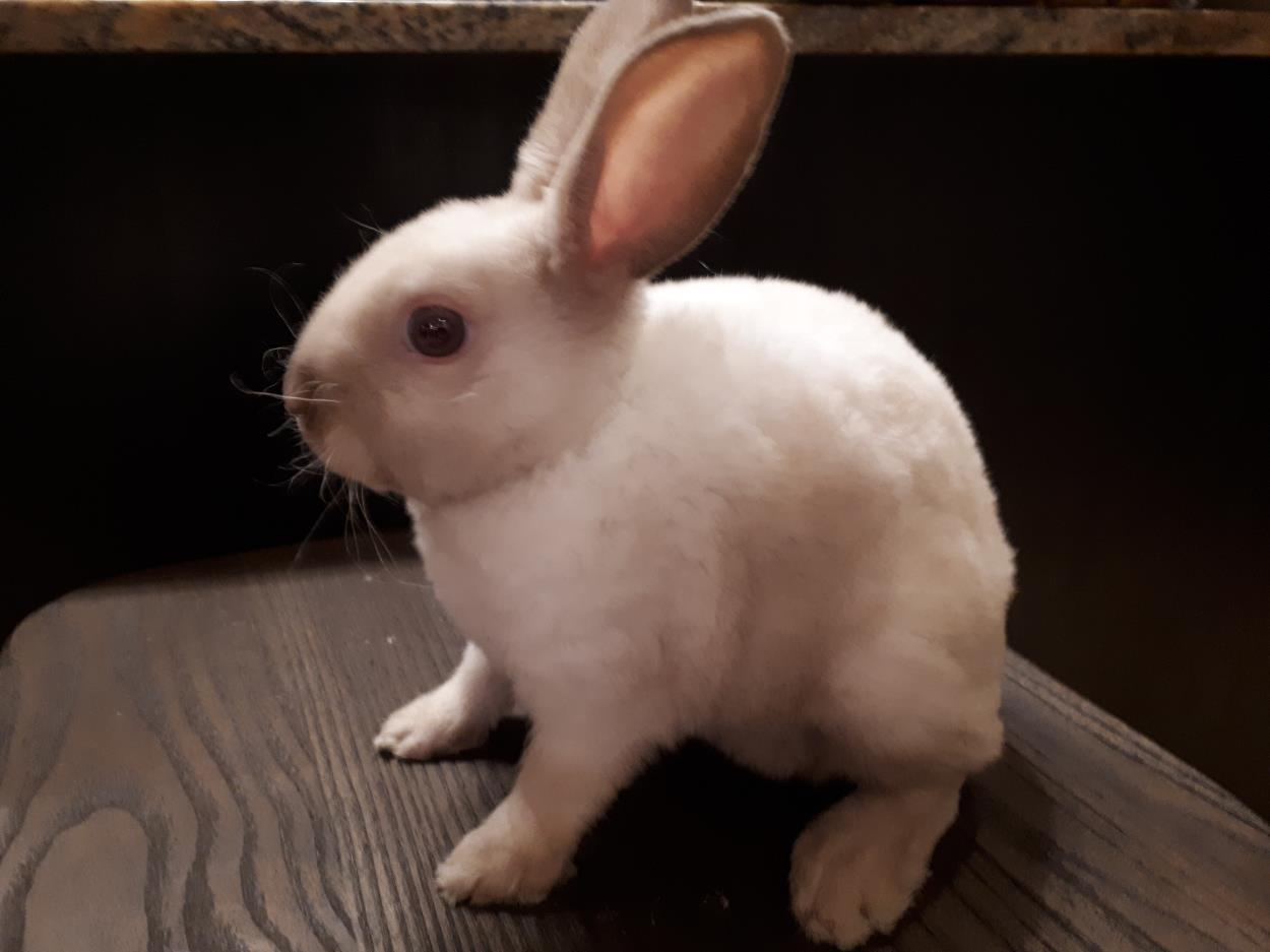 SAQ/ LCBO box lined with newspapers, hay, tiny bunny. I add a bag of food and hay for the transport.