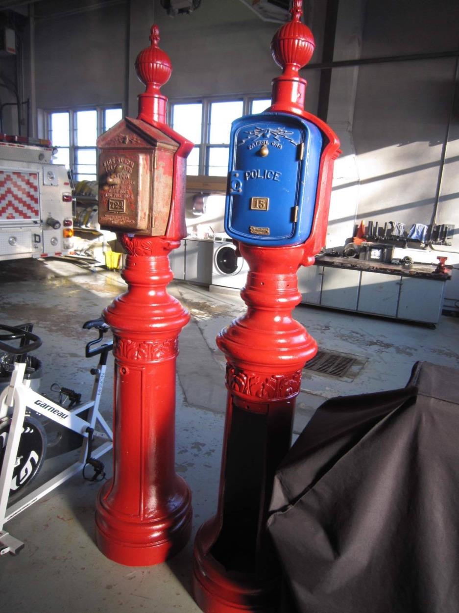 The above dimensions are for the main pedestal. The second pedestal component is 39”(H) x15”(L)x15”(W) and weighs 72 lbs. The three alarm boxes are 16”(H)x6”(L)x13”(W), with the first box weighing 77lbs, the second 60 lbs. and the third 57 lbs.