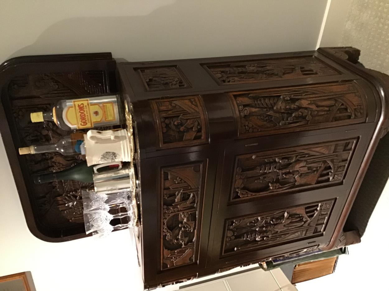 6 steps at receiving house, none at pick up- just long ramp, best if can get over door step at entry at receiving house, covered trailor, strapped, there is the small bench with it - see picture.