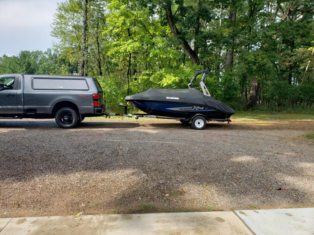 Pic for attn (not actual boat),pick up is at the factory , trailer hitch requires 2 5/16 ball , trailer and boat are new with new tires.