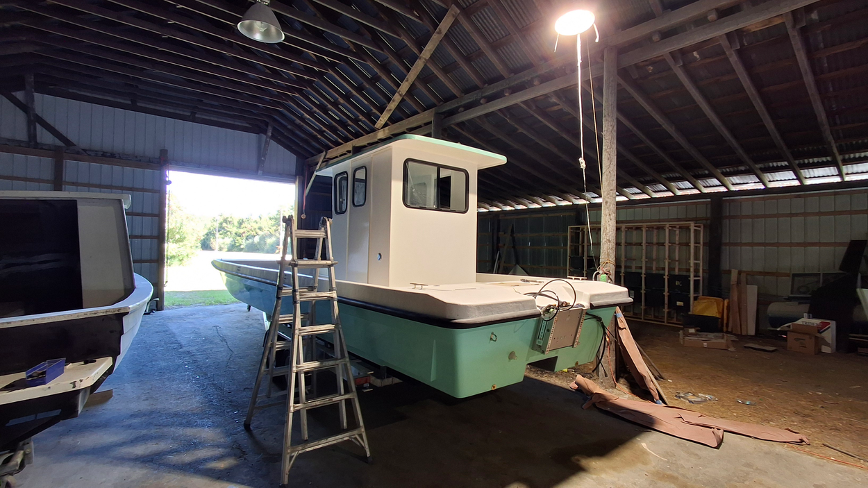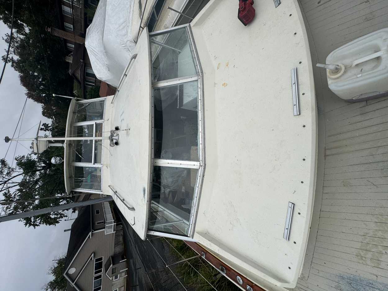 boat will be loaded and unloaded with a travel lift. Will need escort for width and lowboy to be safe with the height. Everything has been removed from the hardtop...