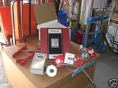 two tanks, panel, 2 smoke heads, 1 nozel, 1 strobe, 1 pull station, and 1 bell.