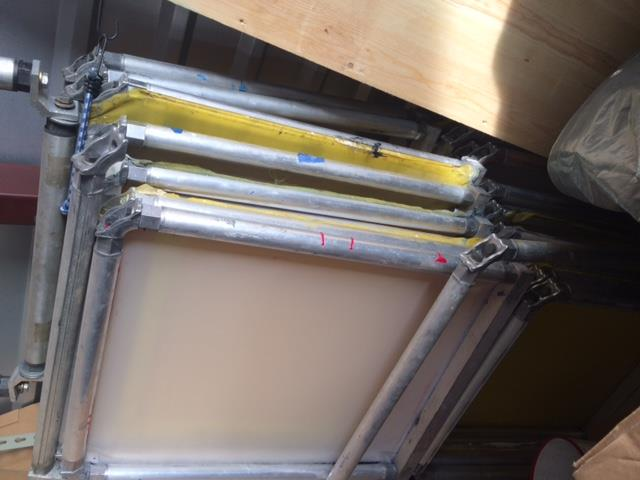 Large steel and aluminum table. 25 aluminum frames