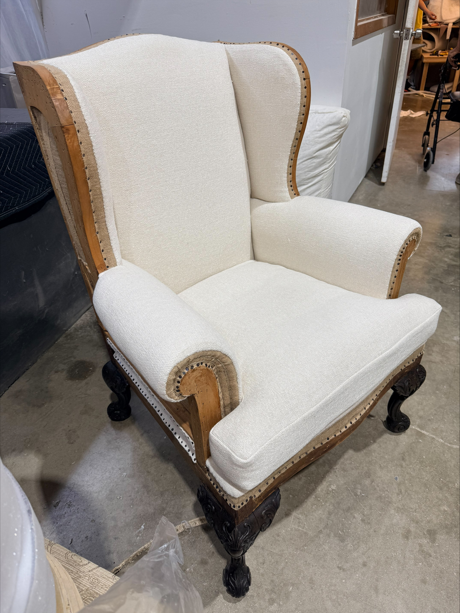 This is a very fragile shipment as it's an antique chair with expensive, white upholstery. Please shrink wrap before blanket wrapped, prior to transportation. Please take great care when handling the chair. Thank you!