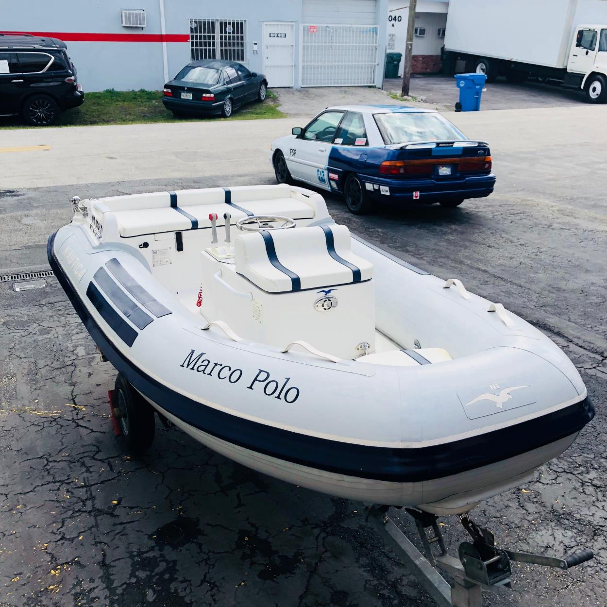 Boat is off trailer, will be picked up at car repair facility and delivered to boat repair facility. Bottom of boat is fiberglass and should not be set directly on deck without carpet or cushion of some type. The car repair shop has a lift to take it off the trailer that may be of help to load. Boat repair shop is set up to unload boats. Prefer enclosed trailer or van but would consider open flat bed. Pick up and delivery during normal work hours at pick up and delivery locations. Dates are flexible if delivered before March 9, 2017