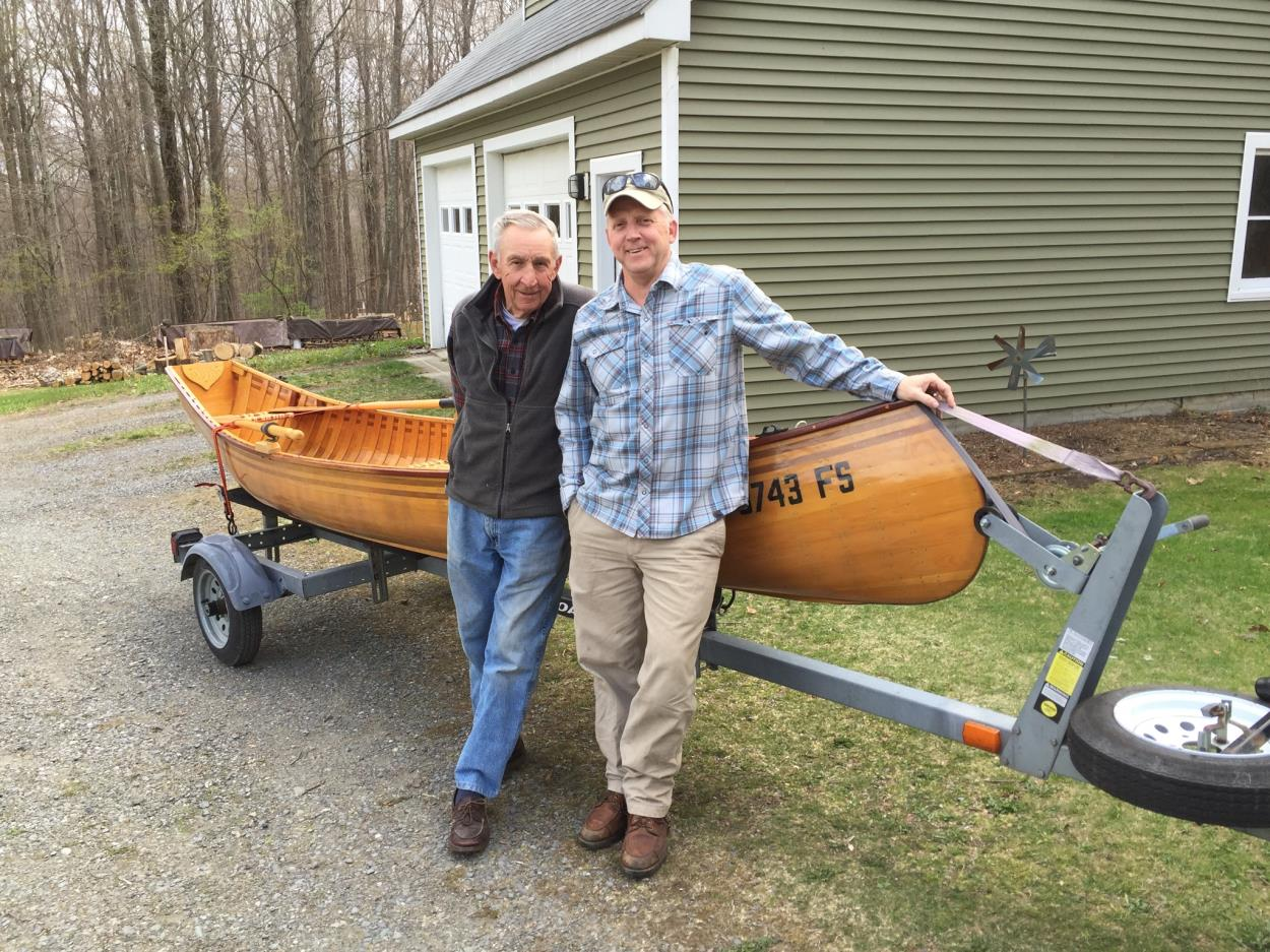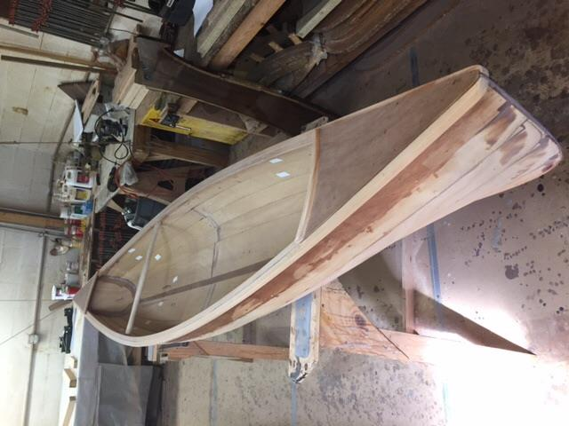 Unfinished wood canoe wrapped in plastic