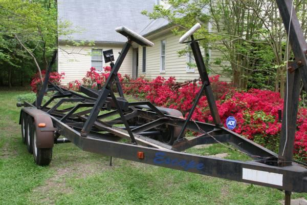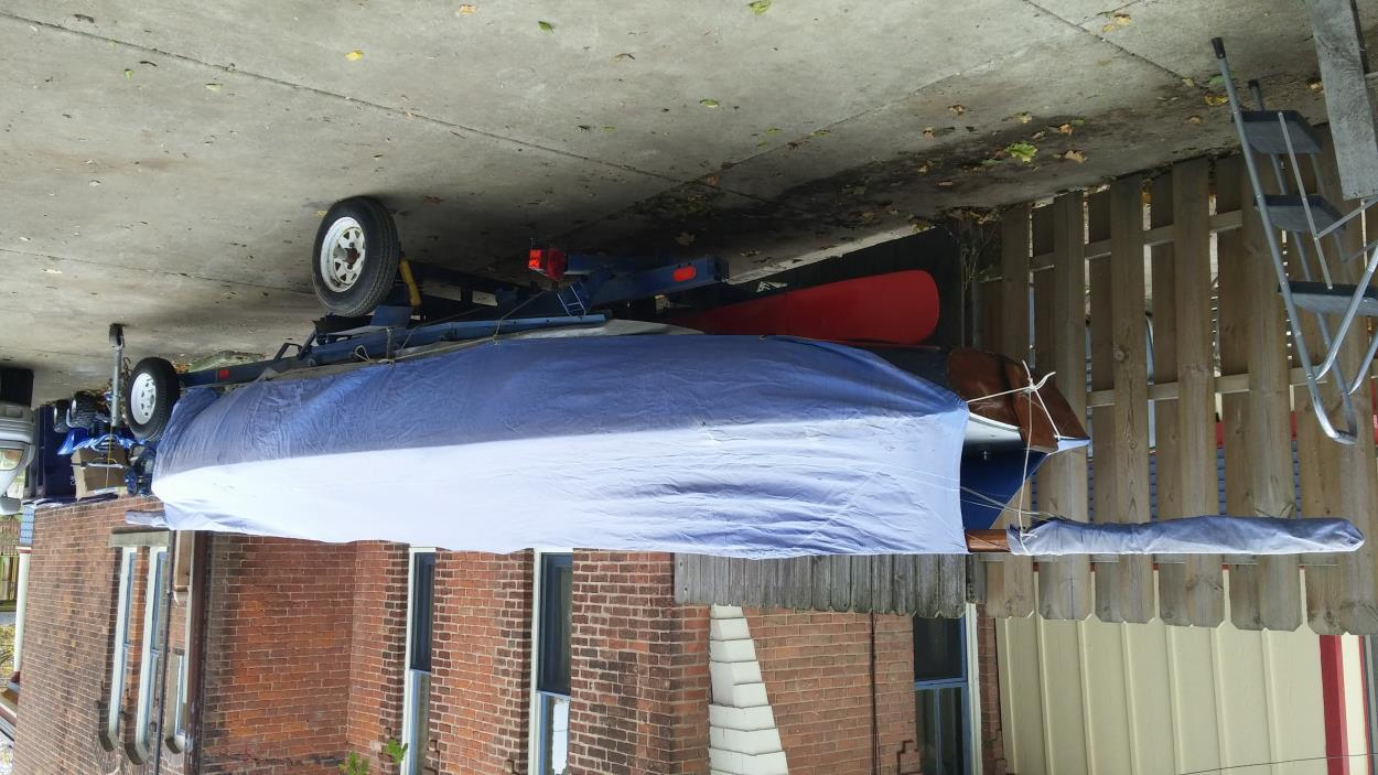 Boat could be stood up vertically and strapped to a trailer wall to minimize space