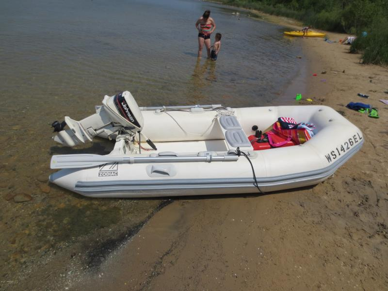 w/15hp Outboard, gas tank, bellows pump, tie down straps and cover. Boat tubes can be deflated which should reduce size to approx. 8ft x 4ft wide. Outboard can be removed and placed inside the boat for shipping provided it is property secured and wrapped with moving blanket.Boat weight approx 190lbs and outboard approx 115lbs