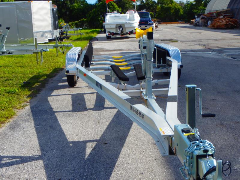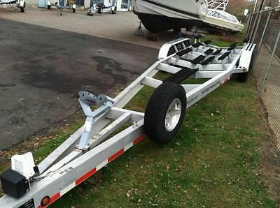 Myco aluminum boat trailer, triple axle, surge brakes, 2 5/8" ball, trailer lights functional, good tires, bearing just repacked. Just the trailer, no boat.