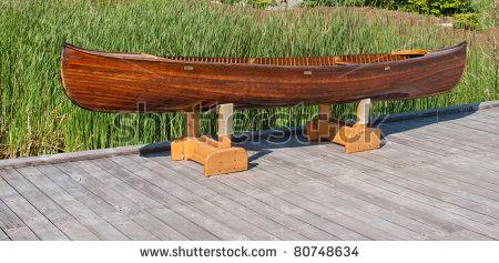 This is a handmade wooden canoe. It has 2 wooden stands that the canoe normally sits on, they resemble saw horses. There will be oars and accessories as well.