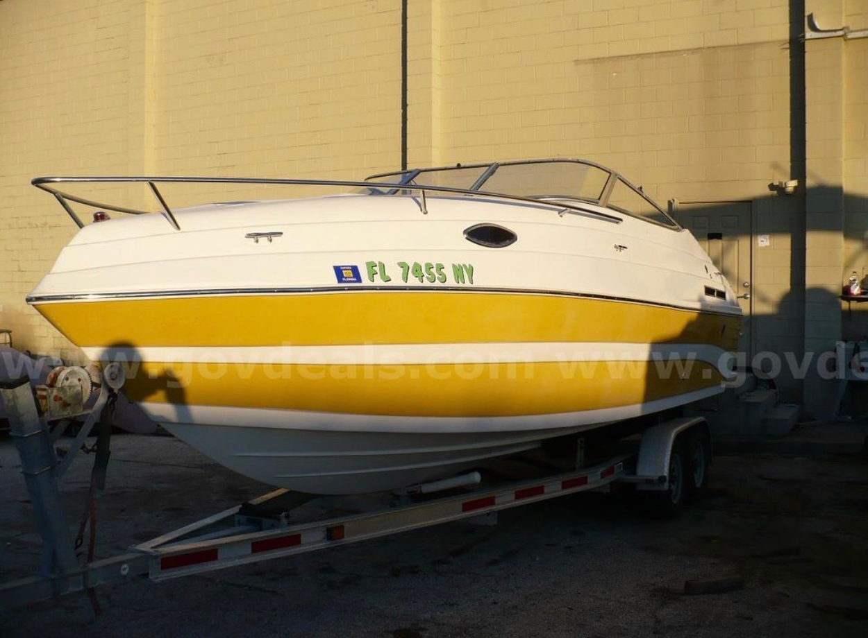 This boat is being transported to Bill's Marine in Mchenry Maryland. The trailer is in excellent condition for towing and has 2 very good spare tires. Permanent MI plate for transport. No cover for boat but it could be tarped or wrapped for transport depending on method etc. I have photos but I can't get the website to work for uploading but I will try once the listing is created.