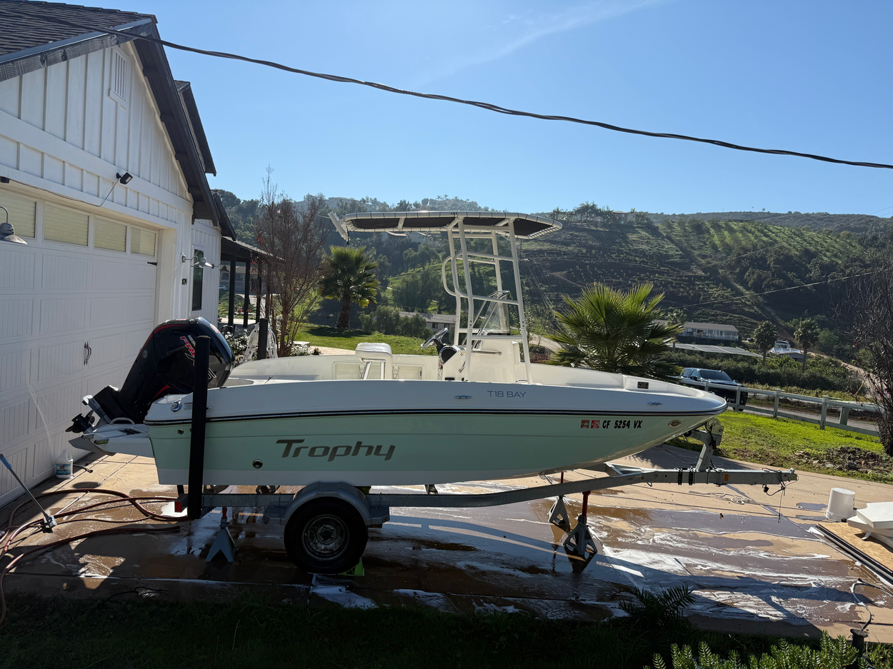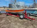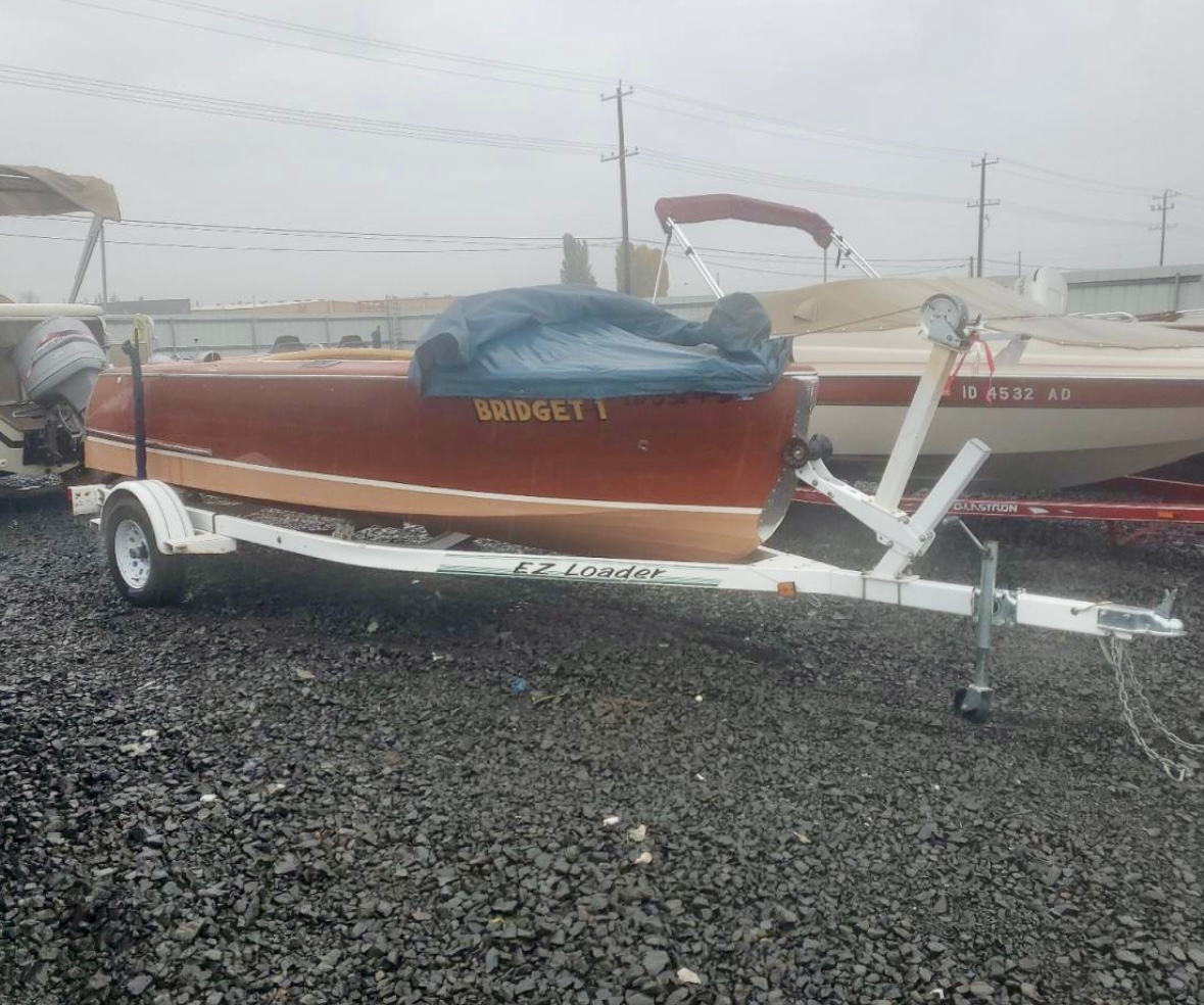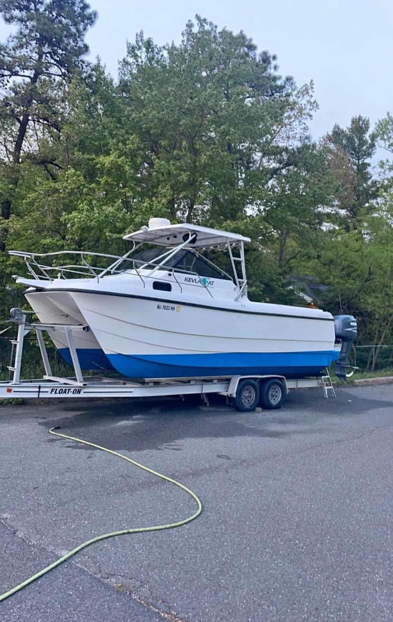 Boat is on trailer but trailer not fully operational, needs flatbed