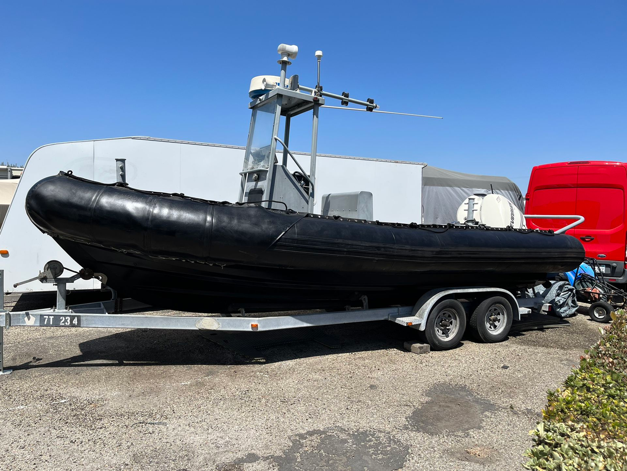 Located at an auction. The front end of the boat would need to be protected for transit.