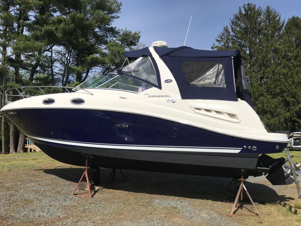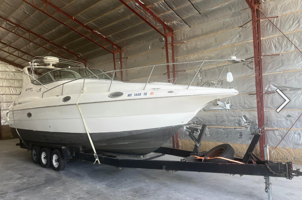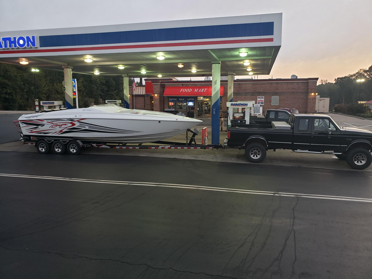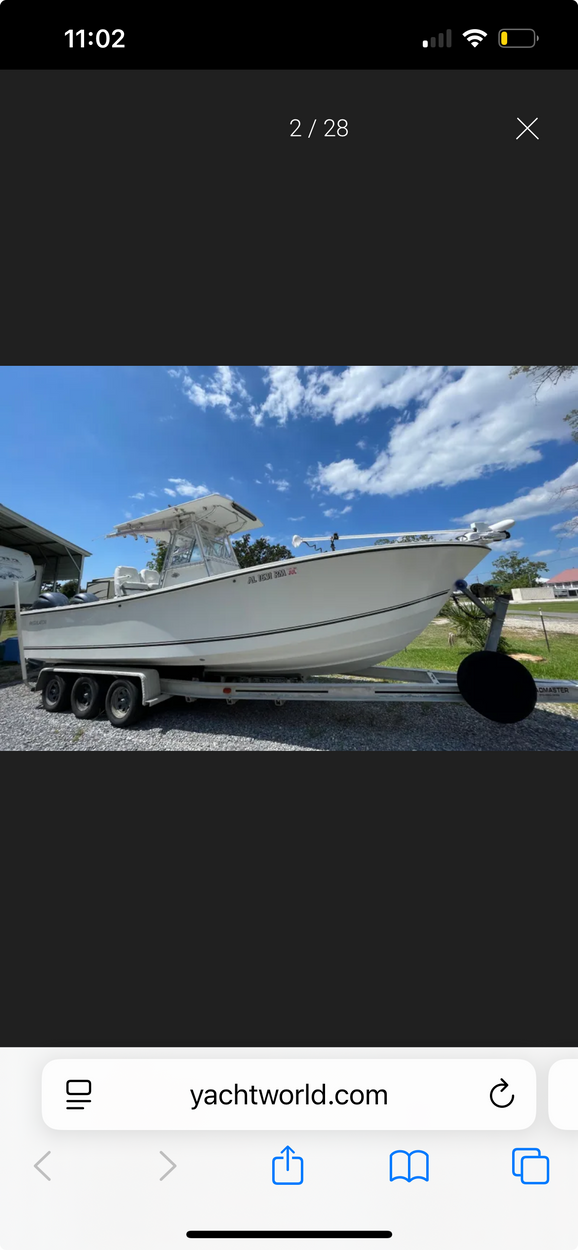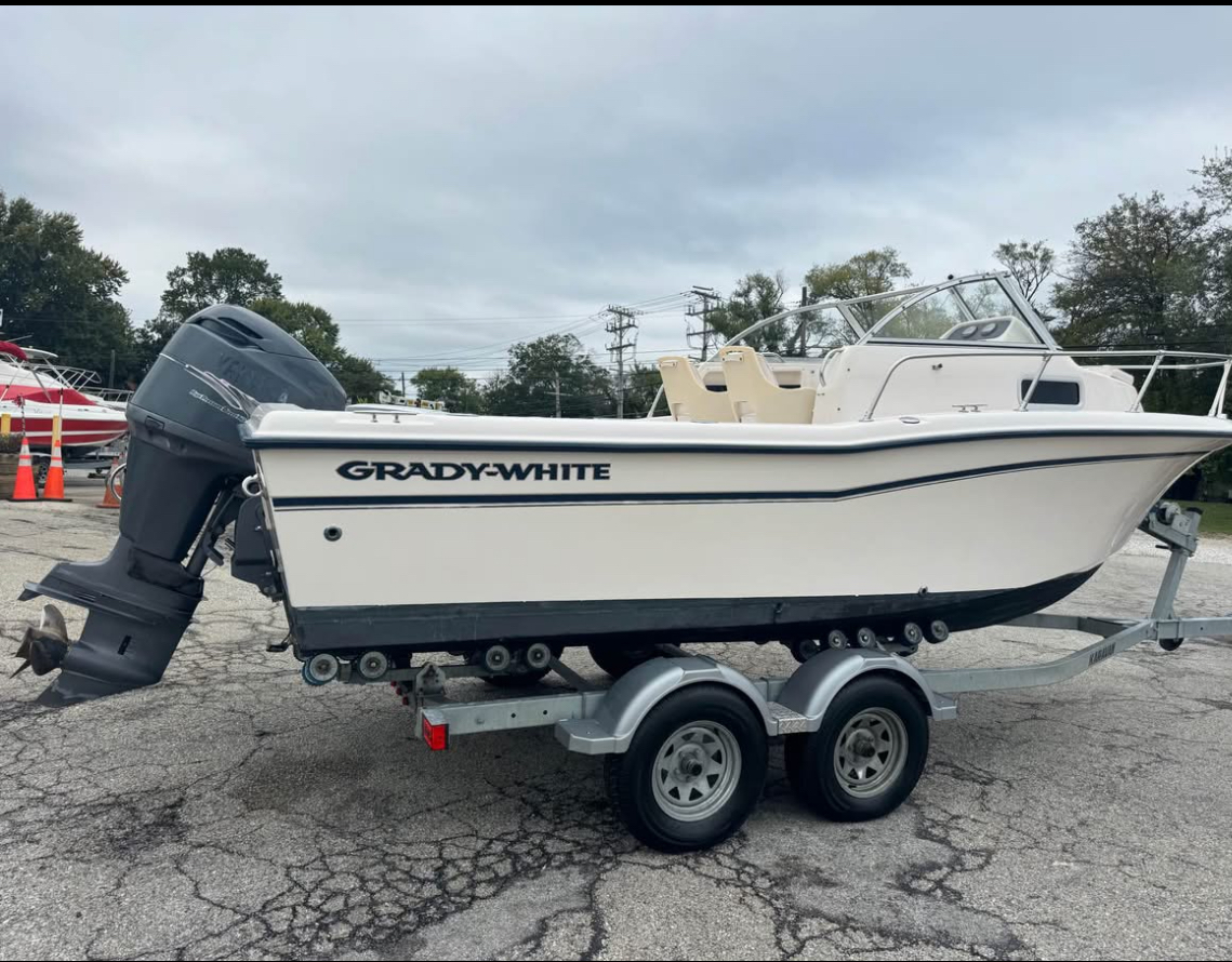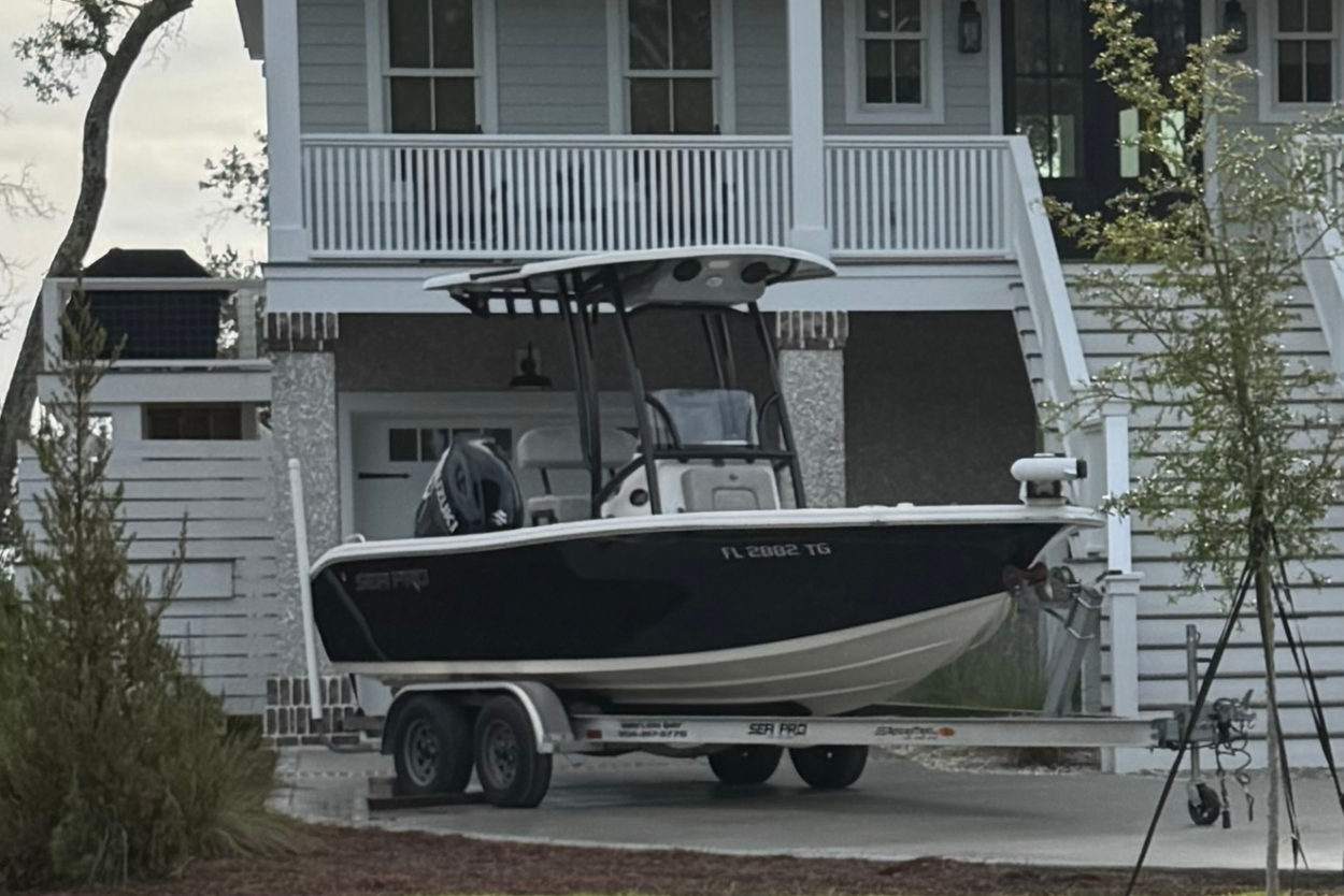 It is a 2008 Edgewater express 265 that will be on a brand new custom built Charleston Trailer (never in water) 12k aluminum trailer with a spare tire & spindle assy. With the radar and on the new trailer it should be around 13' high or lower. It will be professionally shrink wrapped with high quality transport wrap. The front of my house has an extra wide drive up parking area on an arterial road for easy drop off.