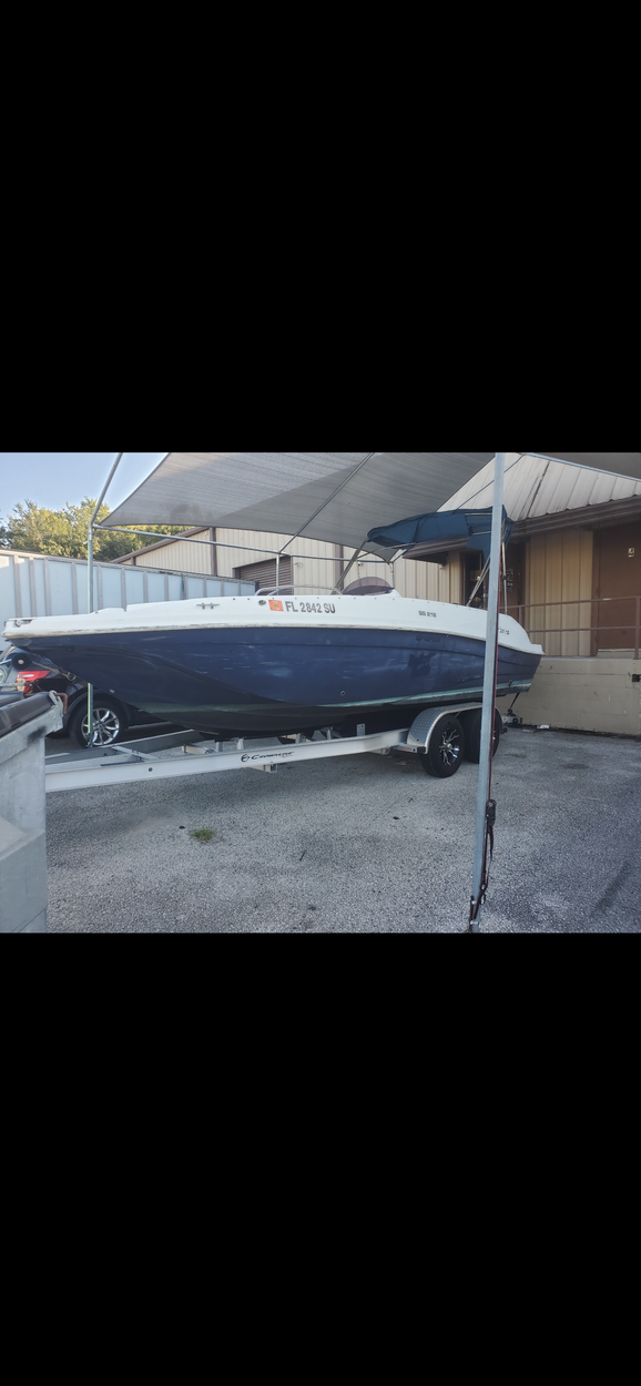 22FT deck boat on a 24ft trailer.
