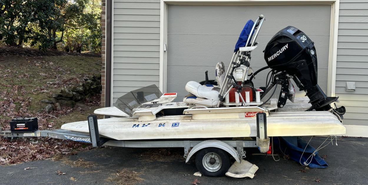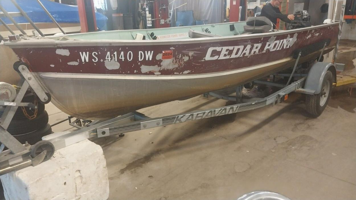 This is a salvage boat at an IAA auction location. They are open for pick ups M-F 8:00-4:30, delivery times are flexible. I do not know if the lights work on the trailer. The ourdrive is partially broken off the back of the boat, it will need strapped up.