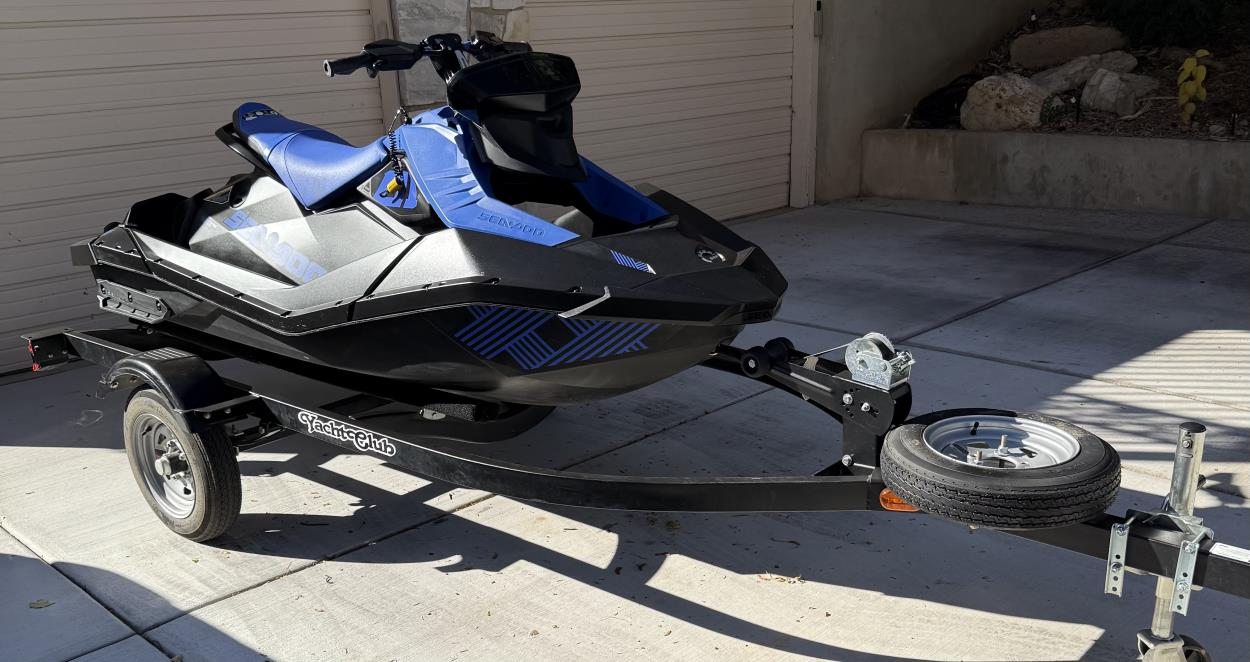 2024 Yamaha SuperJet sitting on a brand new 2026 Magic Tilt trailer. It could be towed on it's trailer, or the package could be loaded onto a flatbed. The trailer measures 60" wide and 172" long. Pickup at dealership in Bradenton, FL and deliver to a residence in Blacklick, OH.