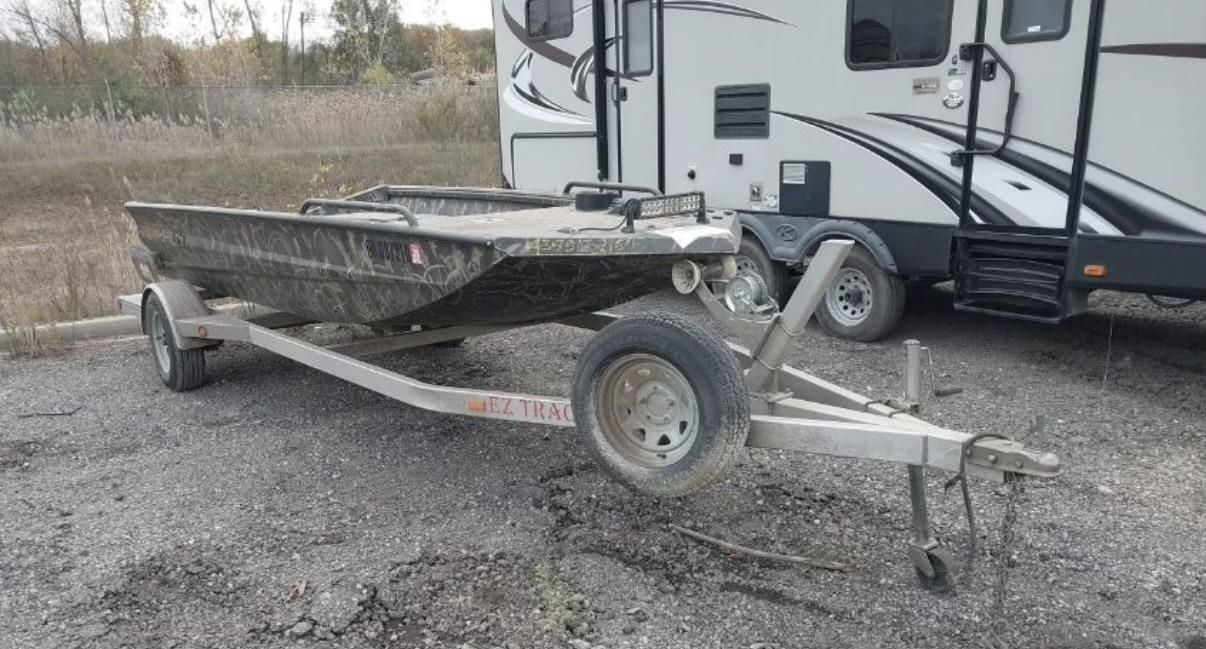 This is for a 17 feet long rowing shell (boat) with oars. It is NOT on a trailer. It can be transported on a car top as it only weighs 50 lbs.