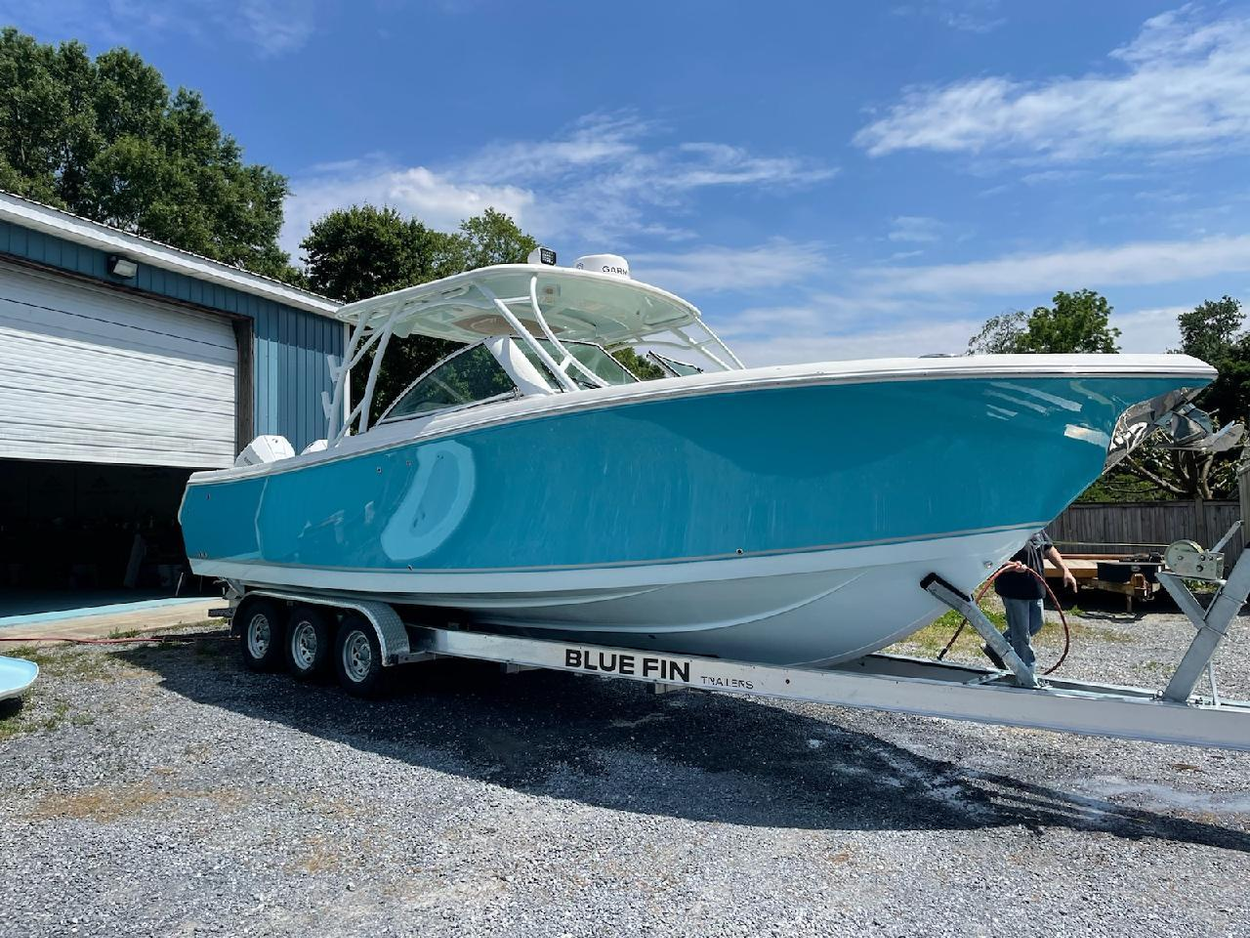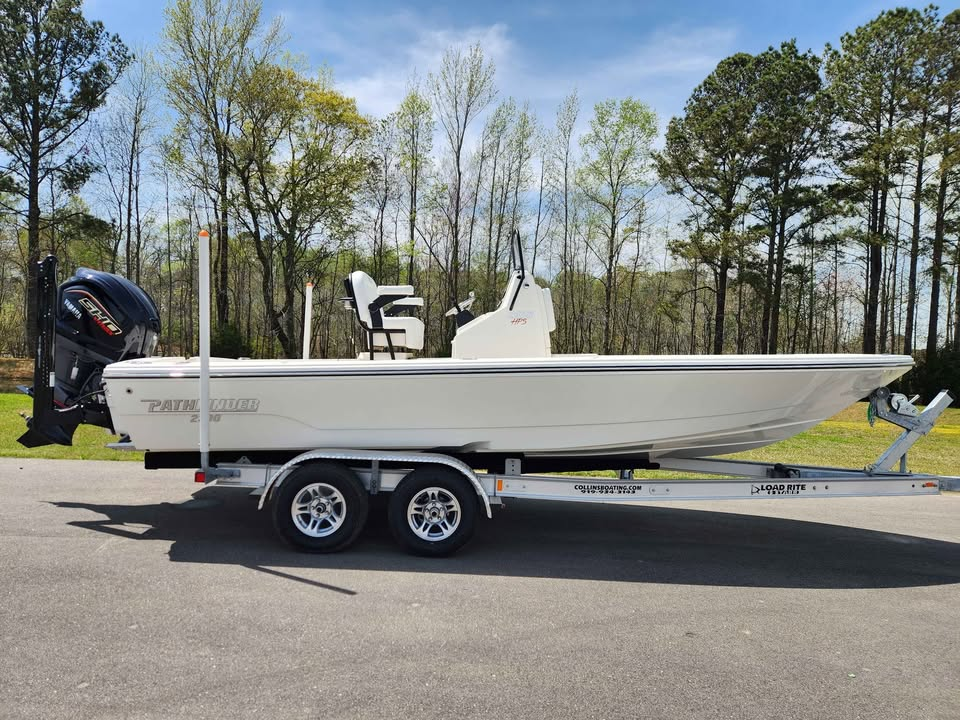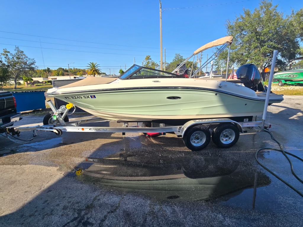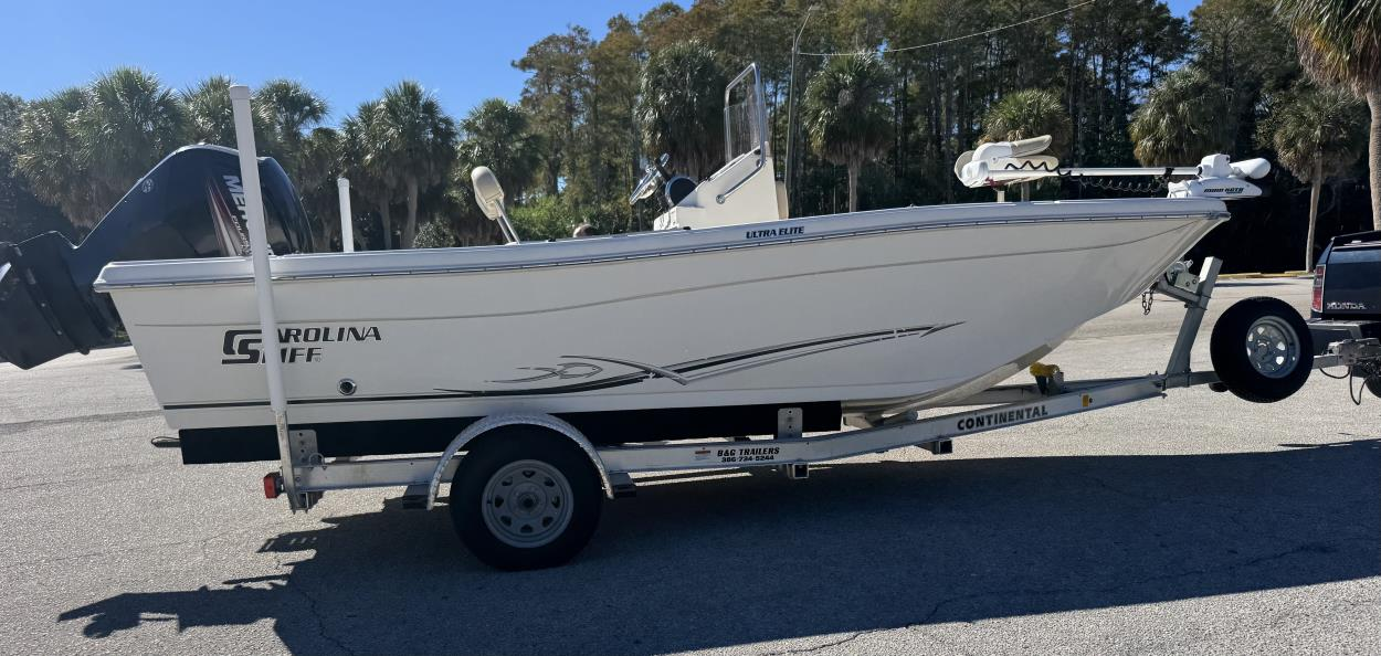 Trailer serviced and fully inspected last week; all bearings/hubs,fittings greased; all lights are fully operational, lug nuts tight, all tires including spare inflated to recommended cold PSI rating listed. Trailer equipped with emergency disk brakes; 2'' Ball. Boat is ready for immediate pickup from a dealership where purchased, boat already secured to trailer with 2 additional tie down straps in stern, everything else was secured or removed, starter battery disconnected, motor secured in locked position, key removed. FYI boat fuel tank was reading just above empty so only ~4-6 gallons on board. Dimensions and weight provided are likely over estimated rather than under estimated to the best of my abilities from NC. **Carriers must be willing to show proof of carrying commercial insurance for liability + cargo, have experience towing boats, I will seriously consider all bids under $800 as I haven't ruled out towing it back myself. Thank You