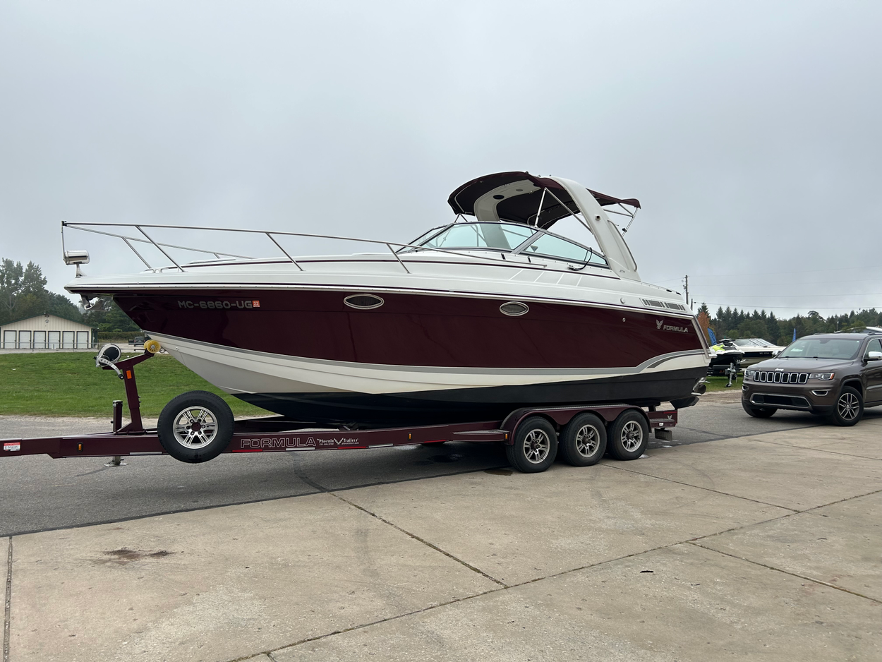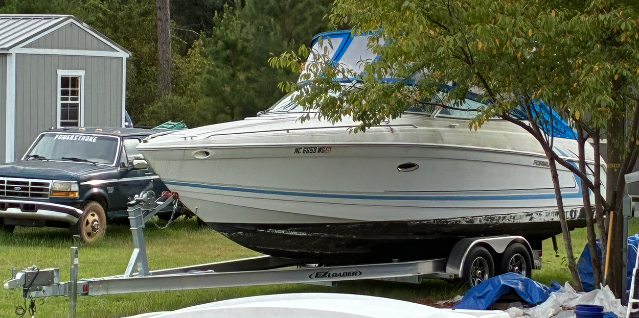 Boat on a brand new trailer , 2 loose out drives , 2 loose plastic covers .