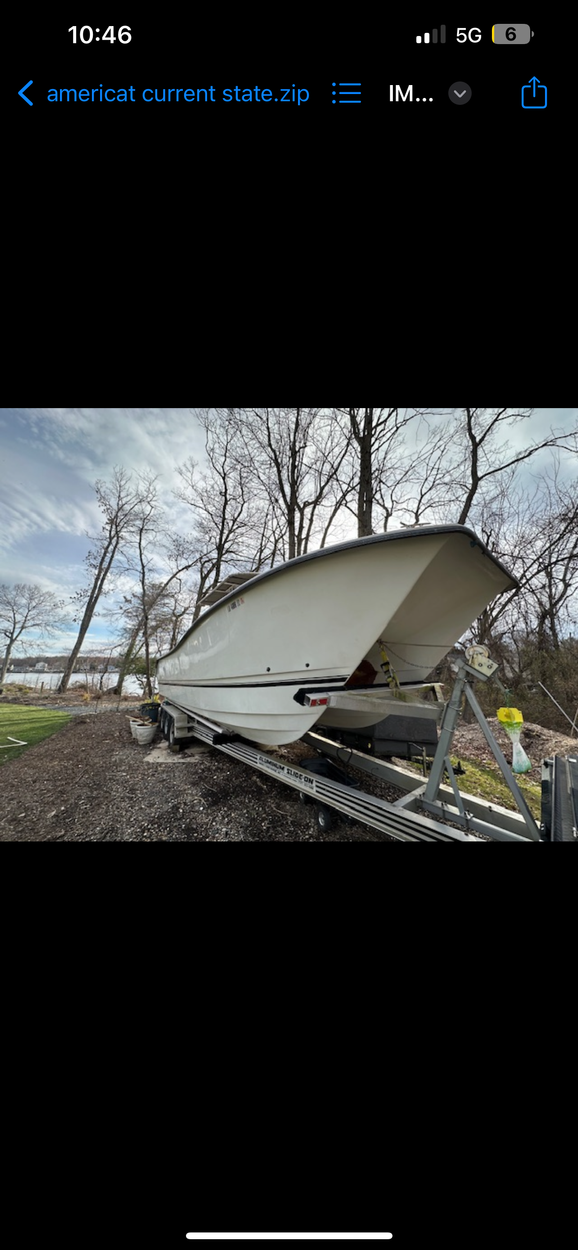 Trailer has 4 new tires and rims, 5 spares..boat is empty. Just hull, no motors