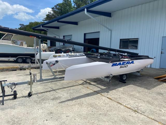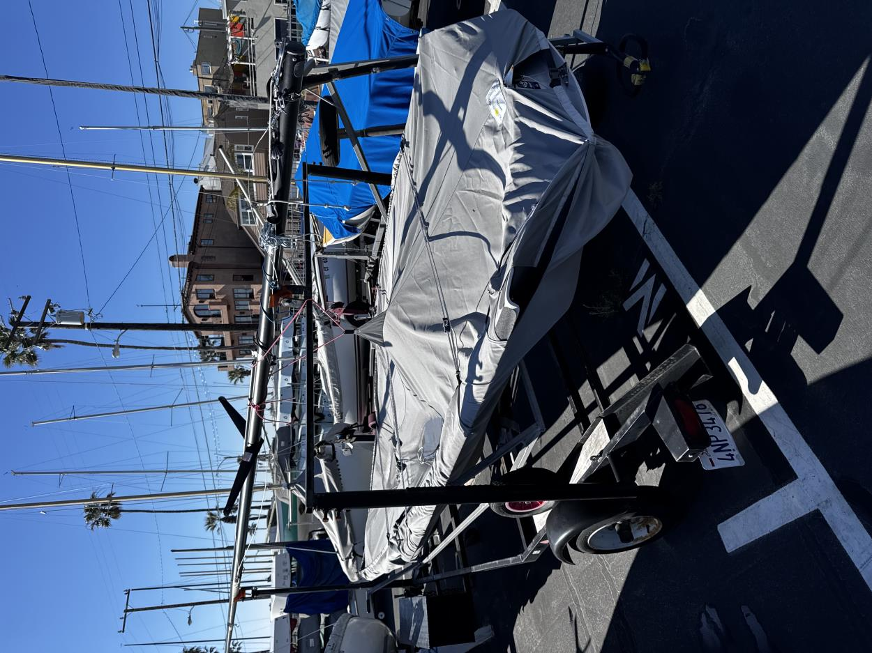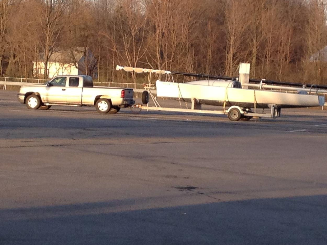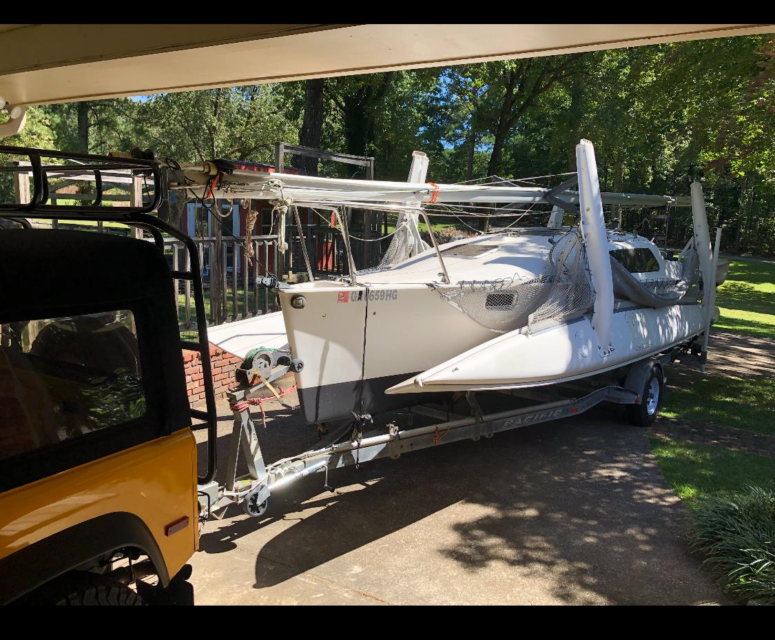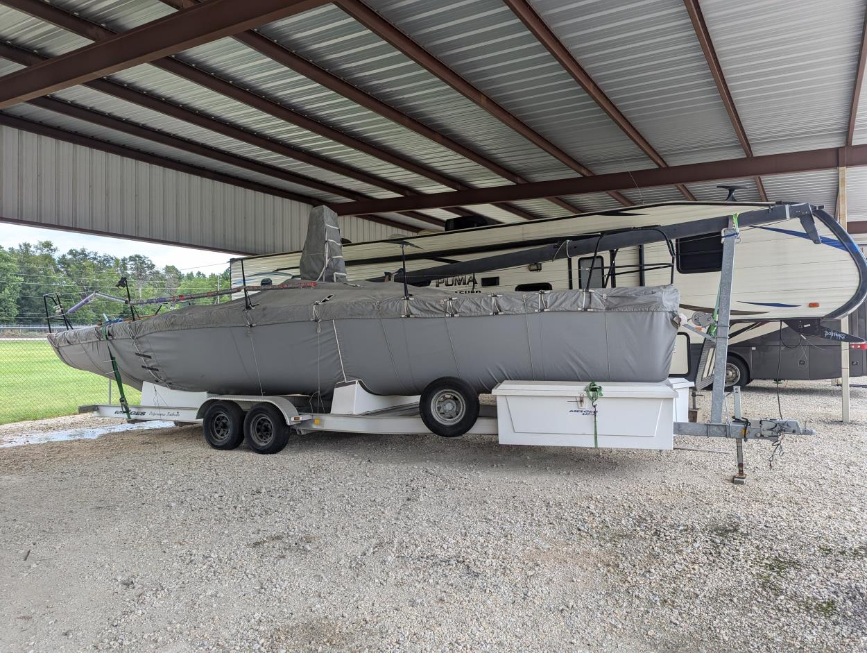New Boat on a new Trailer. Mast will be on cradles on the Boat. One additional Rig box approximately 8 long by 2' wide by 12" tall.