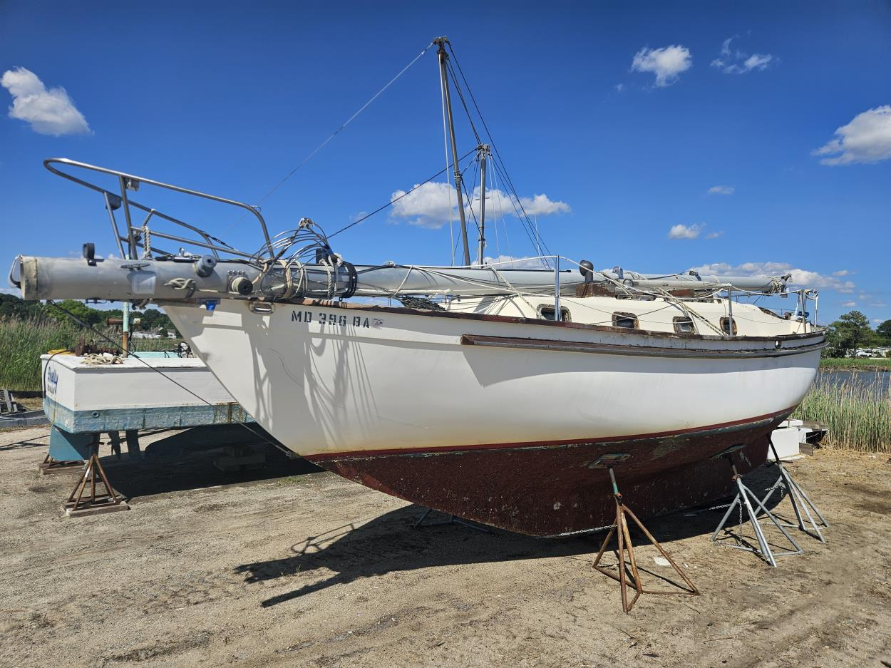 The boat is currently located at a boatyard.