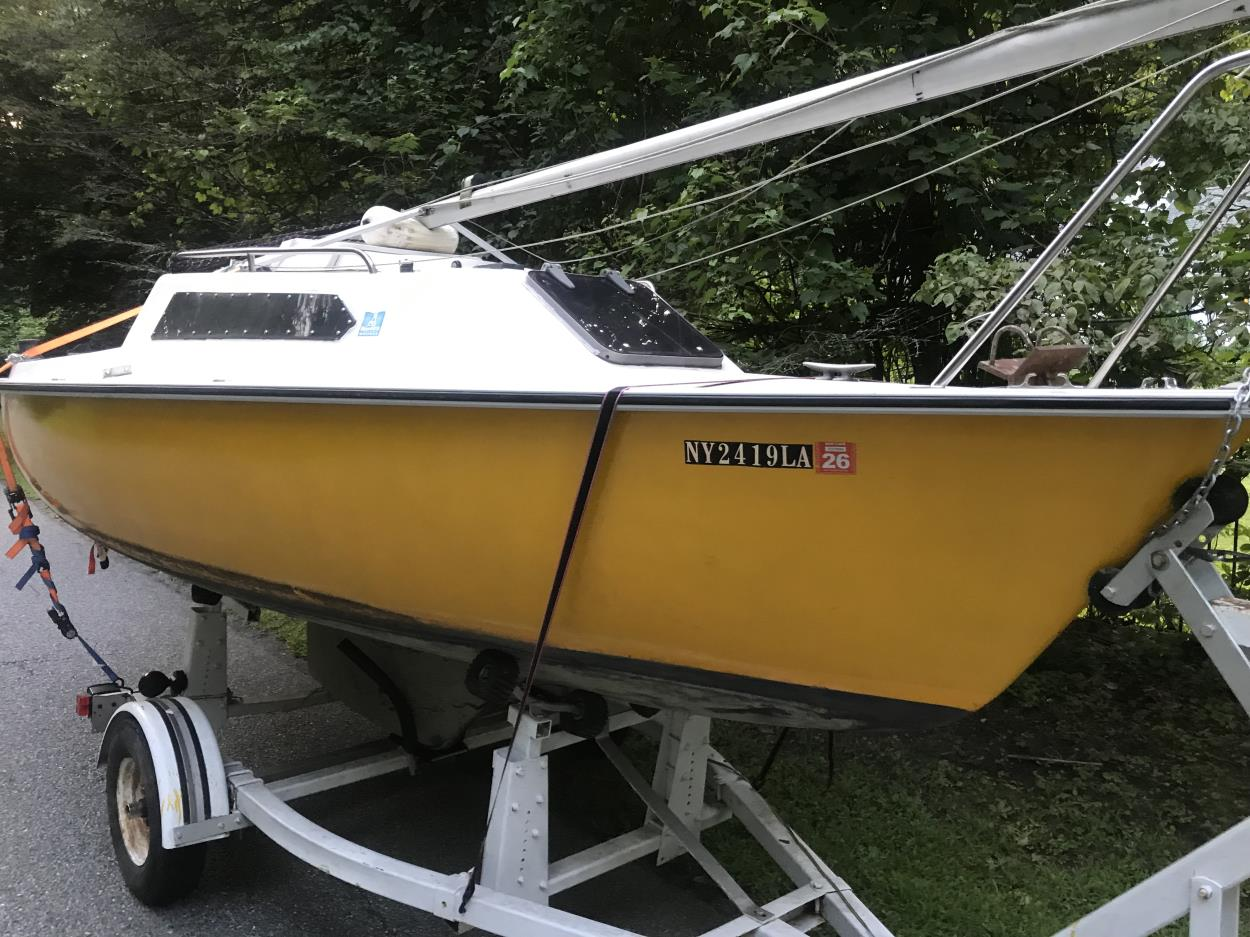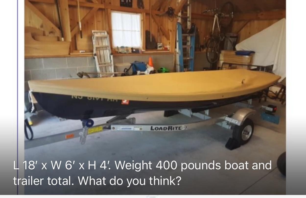 The dimensions are those of the boat in its trailer. The mast is 22 ft long. There is a small outboard motor (2hp) that would need to be carried separately. Job previously listed but delays in paperwork caused it to be timed out.