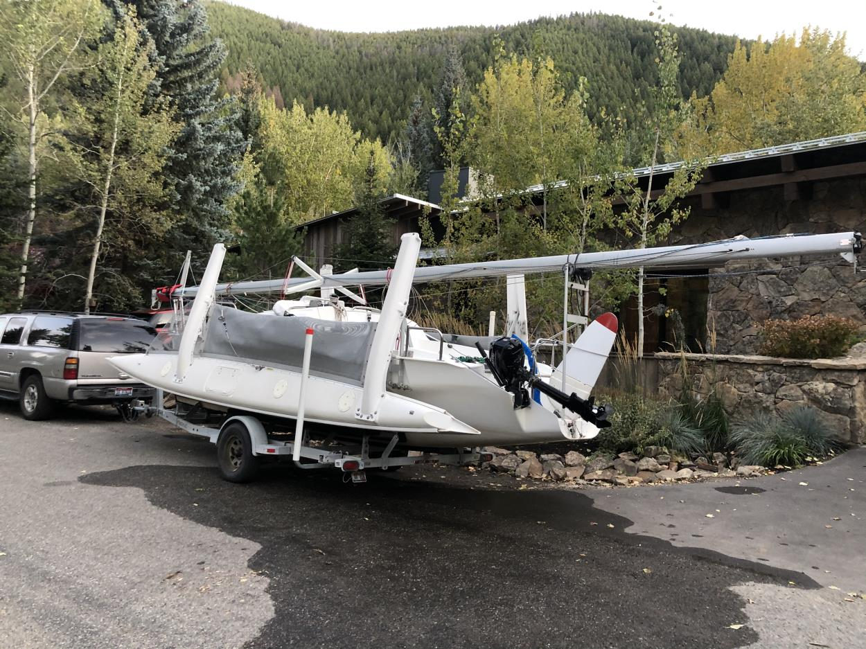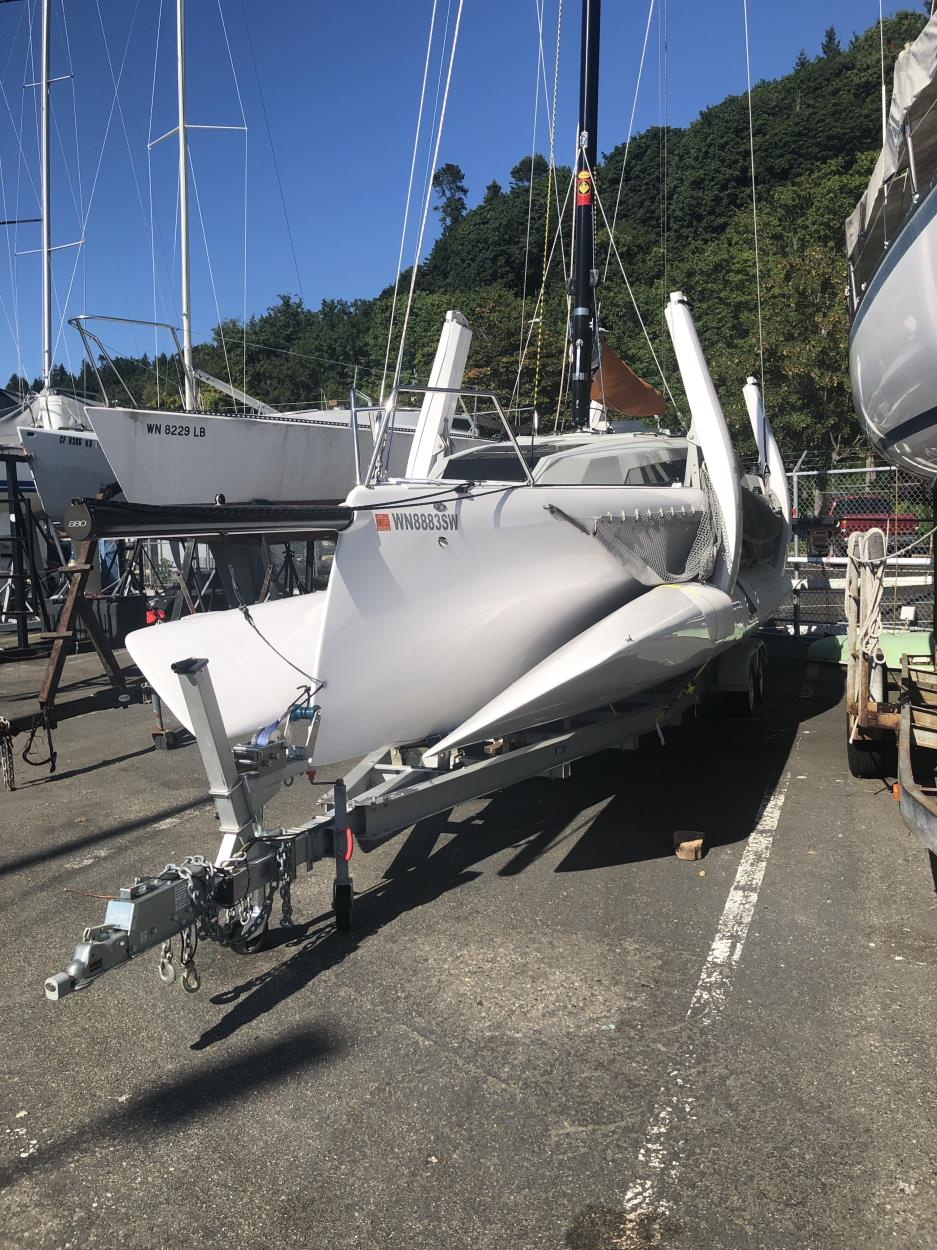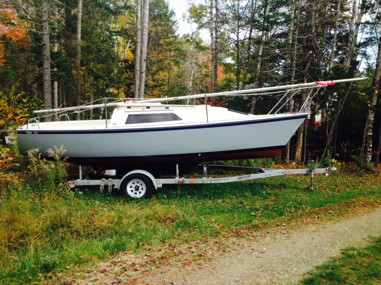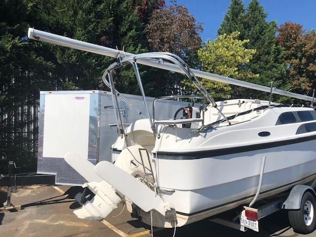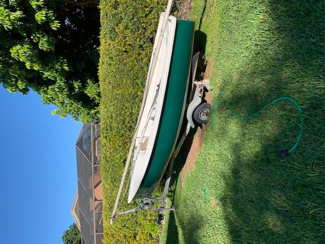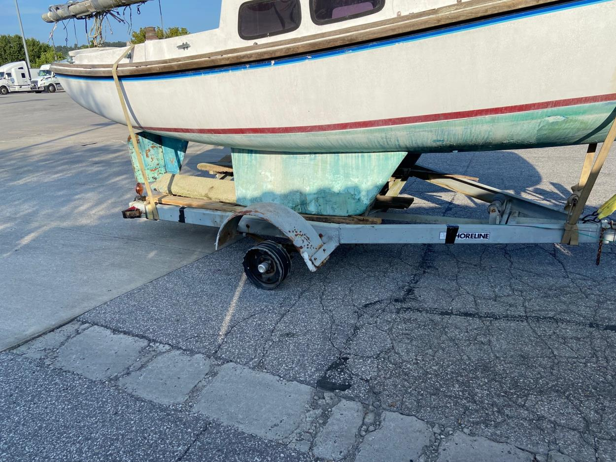 Sailboat is on good roadworthy trailer. Pickup at easily accessible marina parking lot. Easy delivery to a residence with lots of parking area.