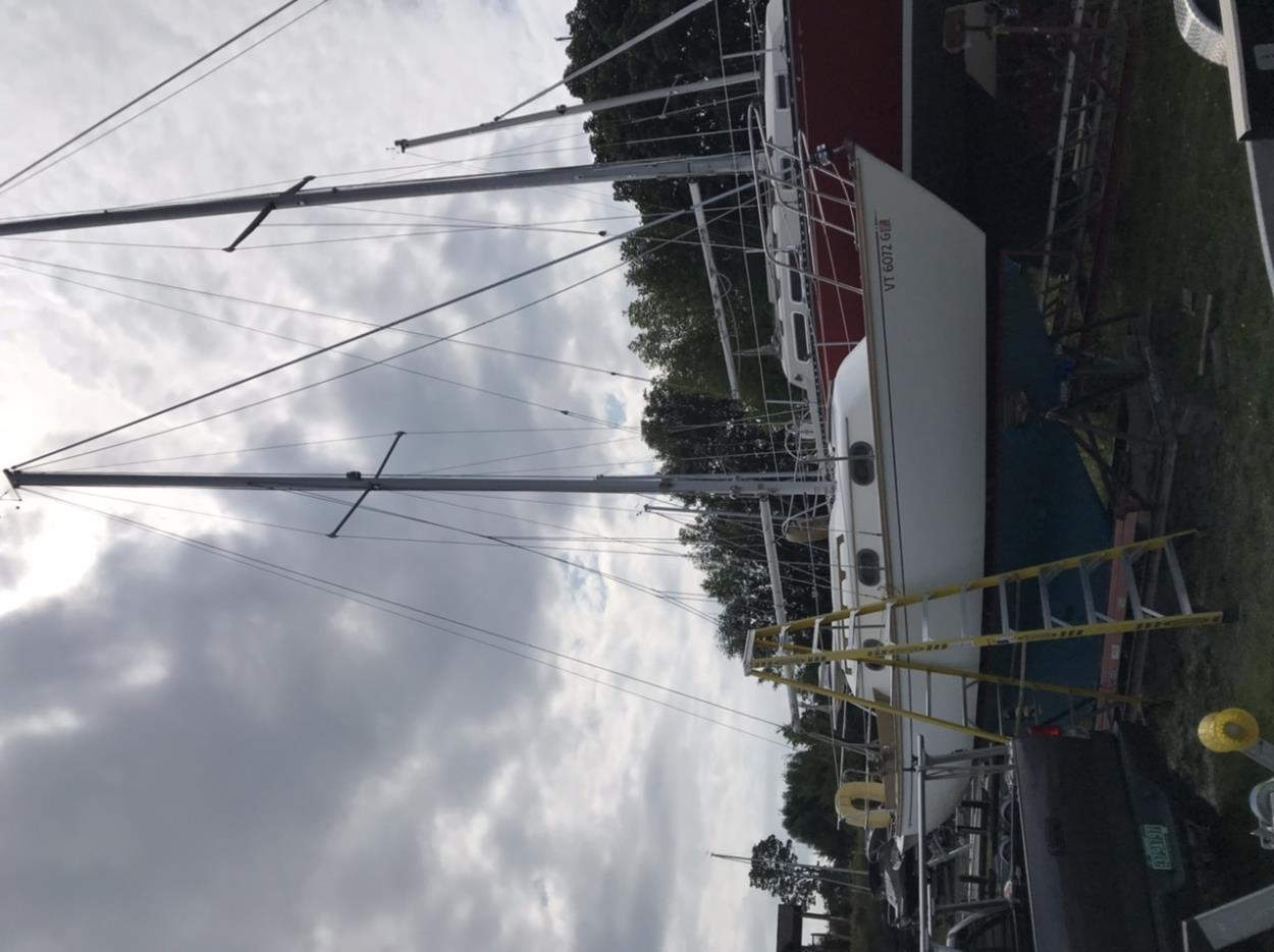 This sailboat is currently on a storage cradle, which is not available for transporting the boat. Haulers should have equipment (eg. hydraulic boat trailer) suitable for moving this type of boat. Thanks