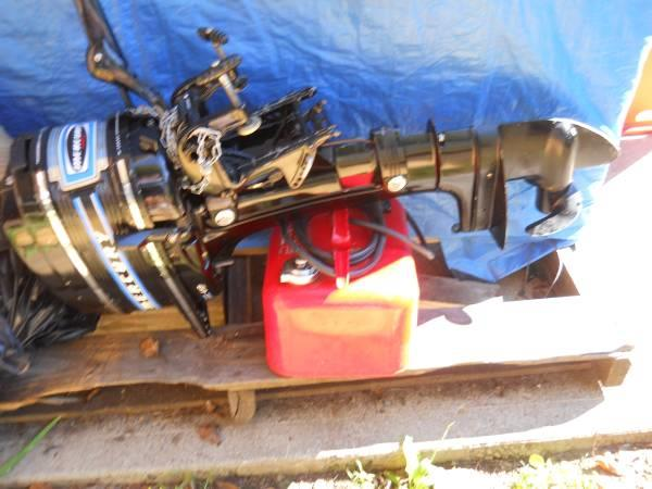 Mercury 225hp outboard engine on pallet.