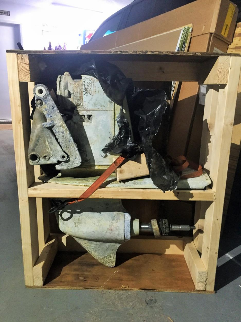 4 cylinder boat engine, it is crated on a pallet.
