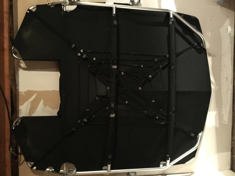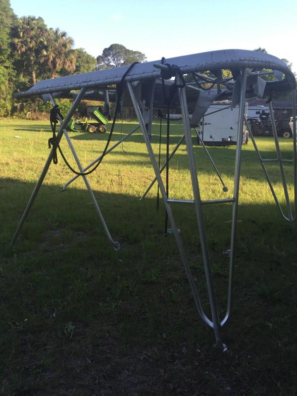 This is a bimini top cargo rack for a boat.
