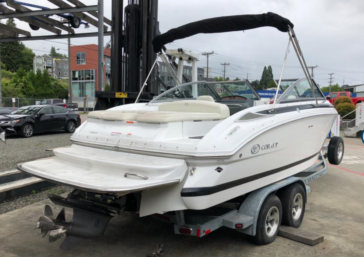 Boat is on a trailer and ready to go at Stryker's Marina in Edenville, MI.