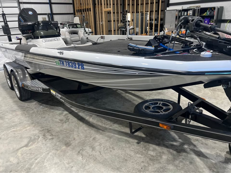 20 ft boat, 2500 lbs with motor. Total length well udner 30 ft. On brand new tandem aluminum trailer with led lights.