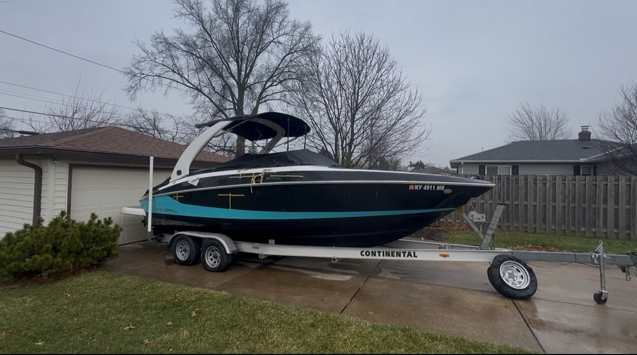 Boat is wrapped for protection. Trailer bearings are new and trailer has spare tire.