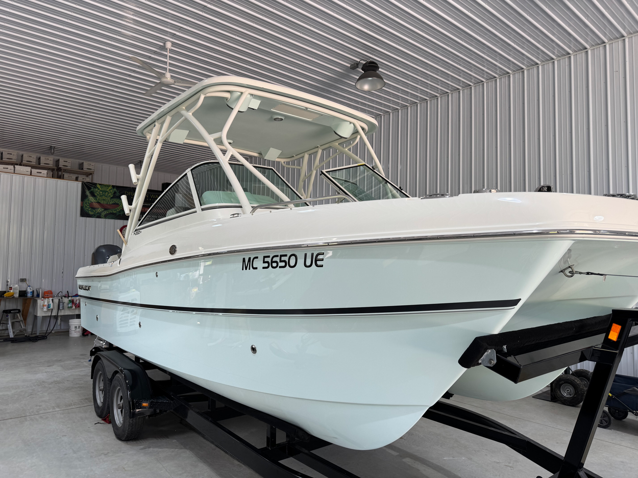 The Boat is currently at a boat dealership and trailer has been serviced and inspected.