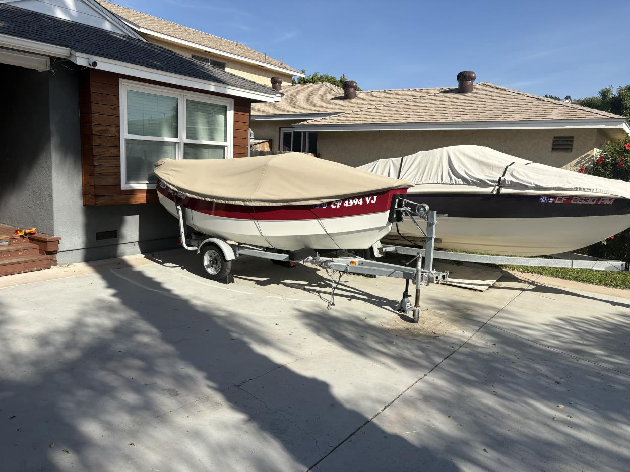 Trailer has 4 new tires and rims, 5 spares..boat is empty. Just hull, no motors