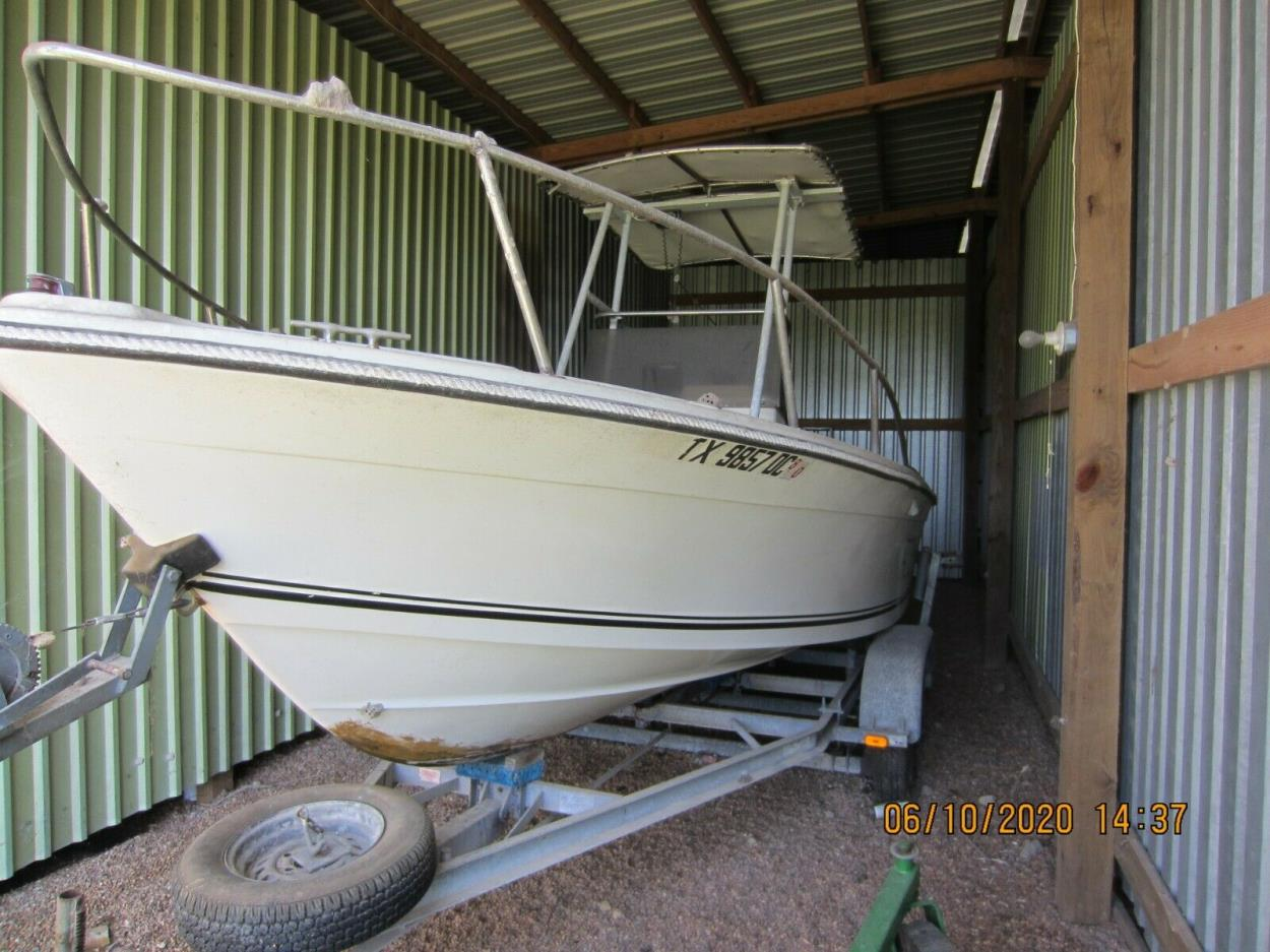 Boat stored in a covered shed at Garrison Bight Marina with forklift used to place boat in water. Forklift can be used to place bait on truck or trailer