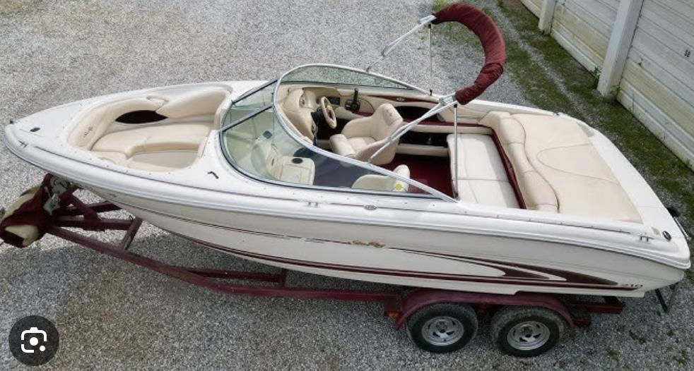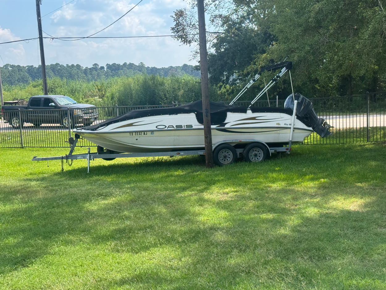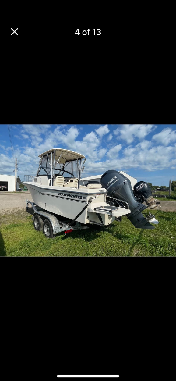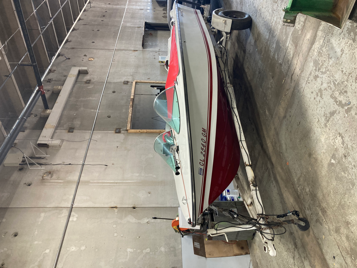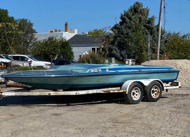 Please see pictures. Trailer and tires appear good, spare tire. Not sure of lights or hitch size so bring tri way hitch and magnet lights. Please secure loose parts inside boat. Drop off is flexible.