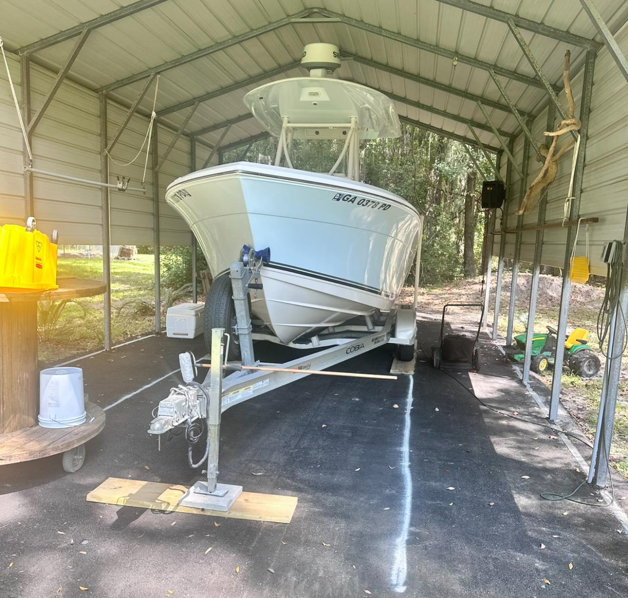Delivery pickup from outdoor storage and delivery to outdoor storage. The boat cover in picture will not be on during transport.