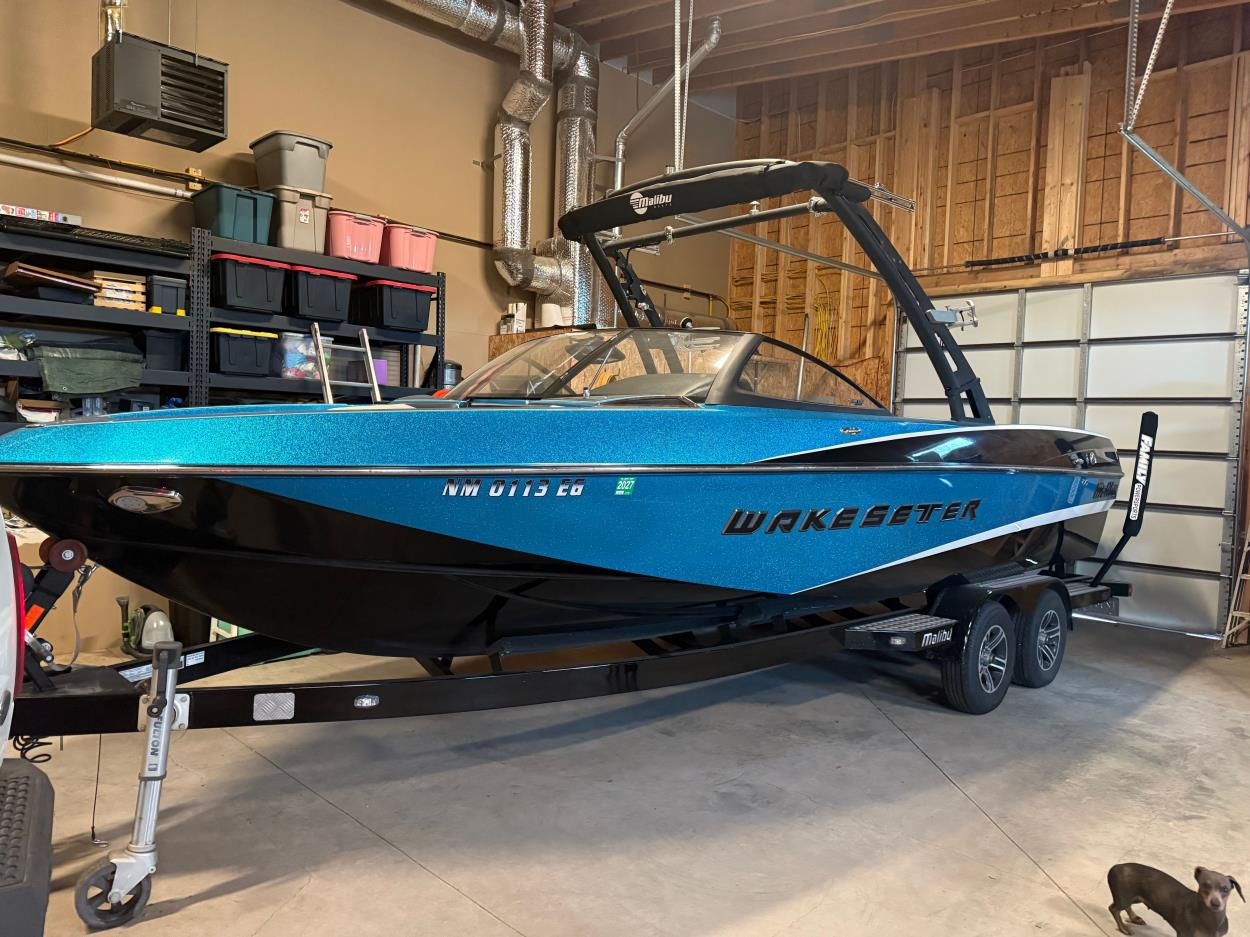 Boat is on a tandem axle trailer