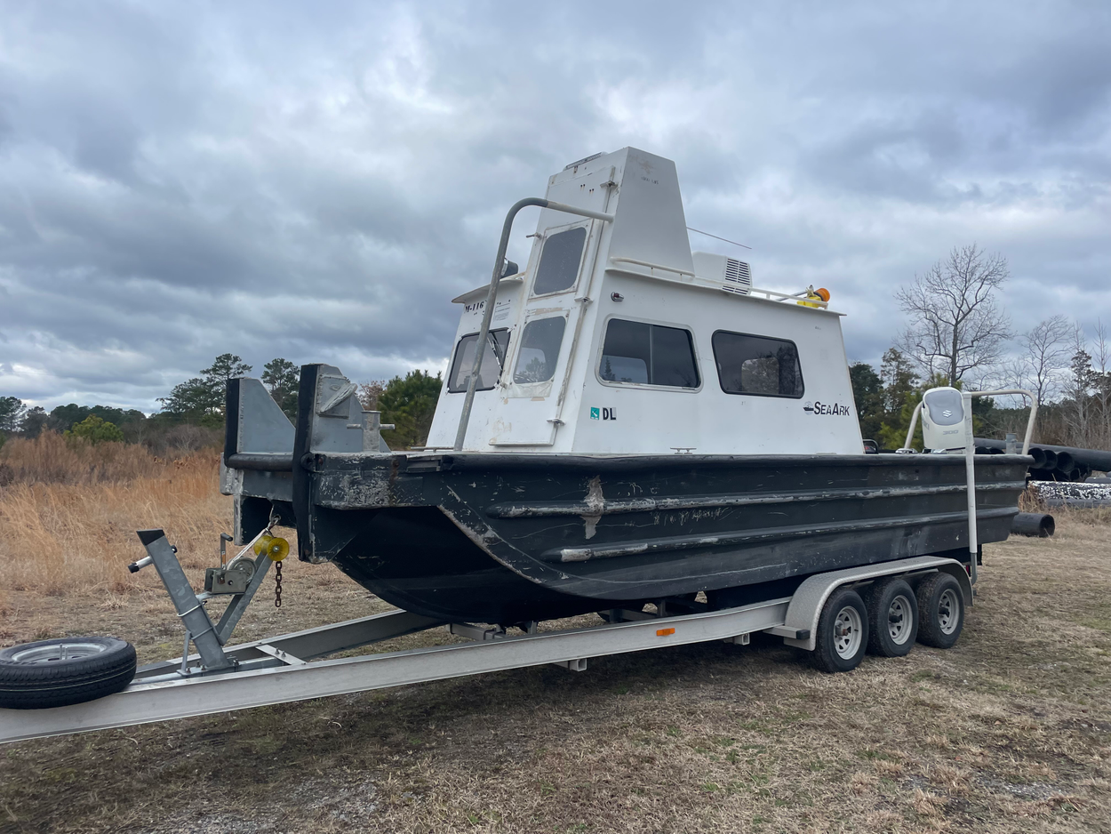 Boat/trailer will need to be winched on trailer and hauled away not towed as it has axle damage