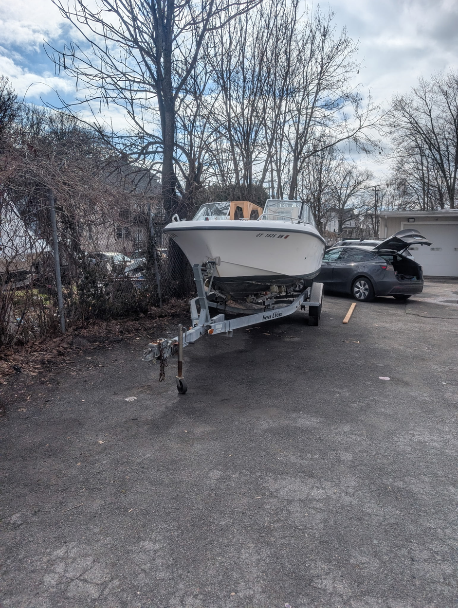 Boat on new trailer will have my Massachusetts trailer plate on it ready to go I’m also willing to drive South meet you to save some milage