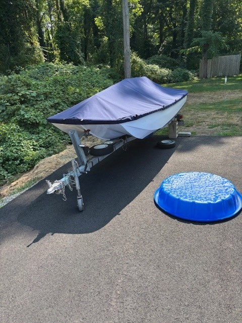Boat will have a full cover on for the trip (the pictures show the boat on its trailer without cover)