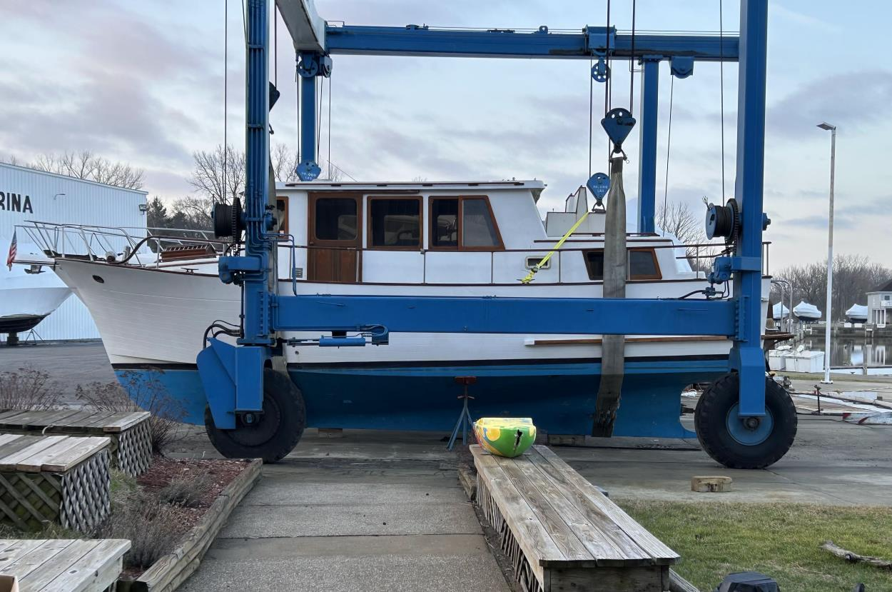 Fly bridge and upper steering station are removed, no shrink wrap, ready to ship now.