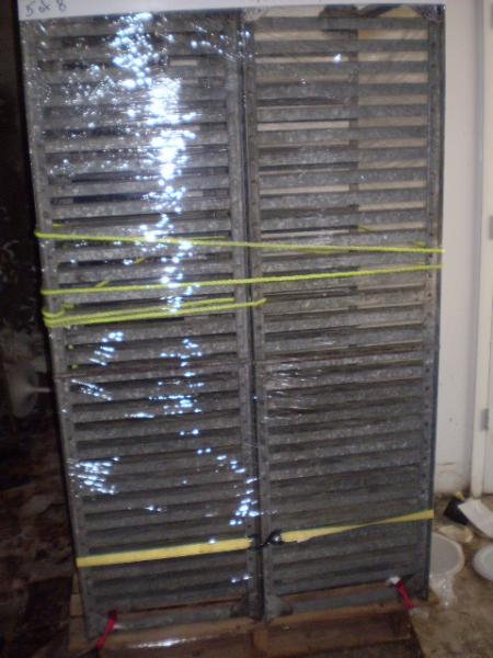 5. There are 18 steel shelving sections. Each shelf is composed of lightweight steel interlocking slats, each of which is about 5 x 48, which when interlocked together form a single big shelf that is 48 x 96.