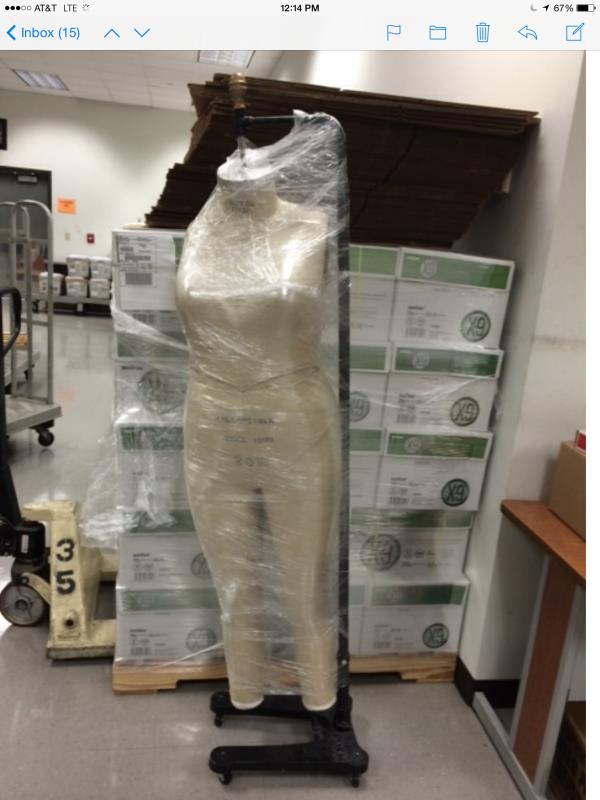 This clothing bust is what a buyer for a department store chain would use to try on samples, etc. The hanging apparatus can be detached.