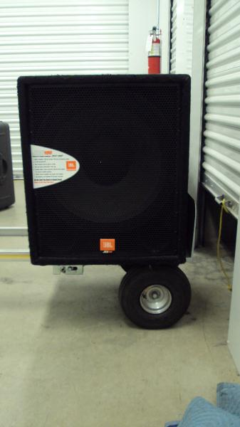 It is sitting on a handtruck there is no wheels just two handles like a standard speaker cabinet